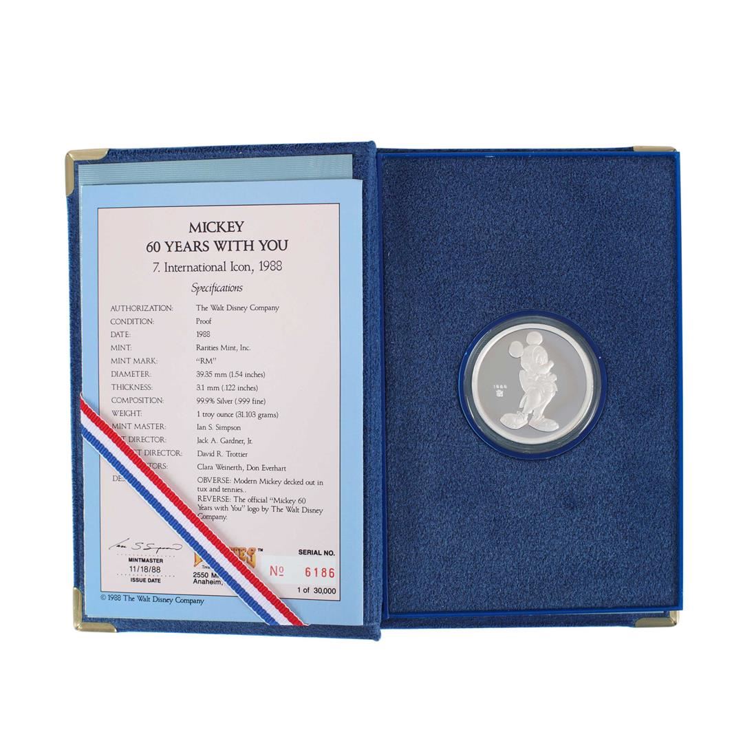 One 1988 Rarities Mint Disney Mickey Mouse Silver Proof Coin w/Box & COA.