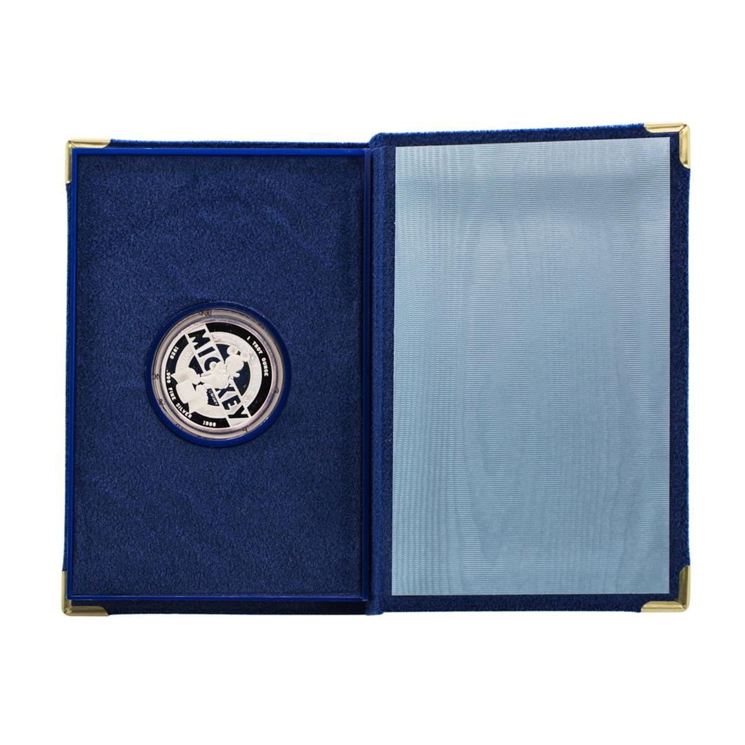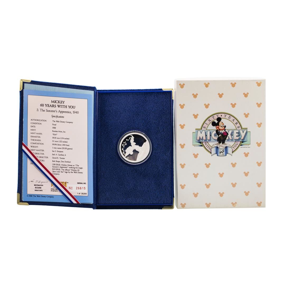 One 1988 Rarities Mint Disney Mickey Mouse Silver Proof Coin w/Box & COA.