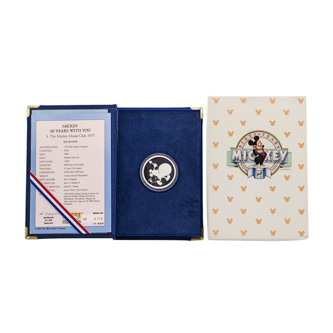 One 1988 Rarities Mint Disney Mickey Mouse Silver Proof Coin w/Box & COA.