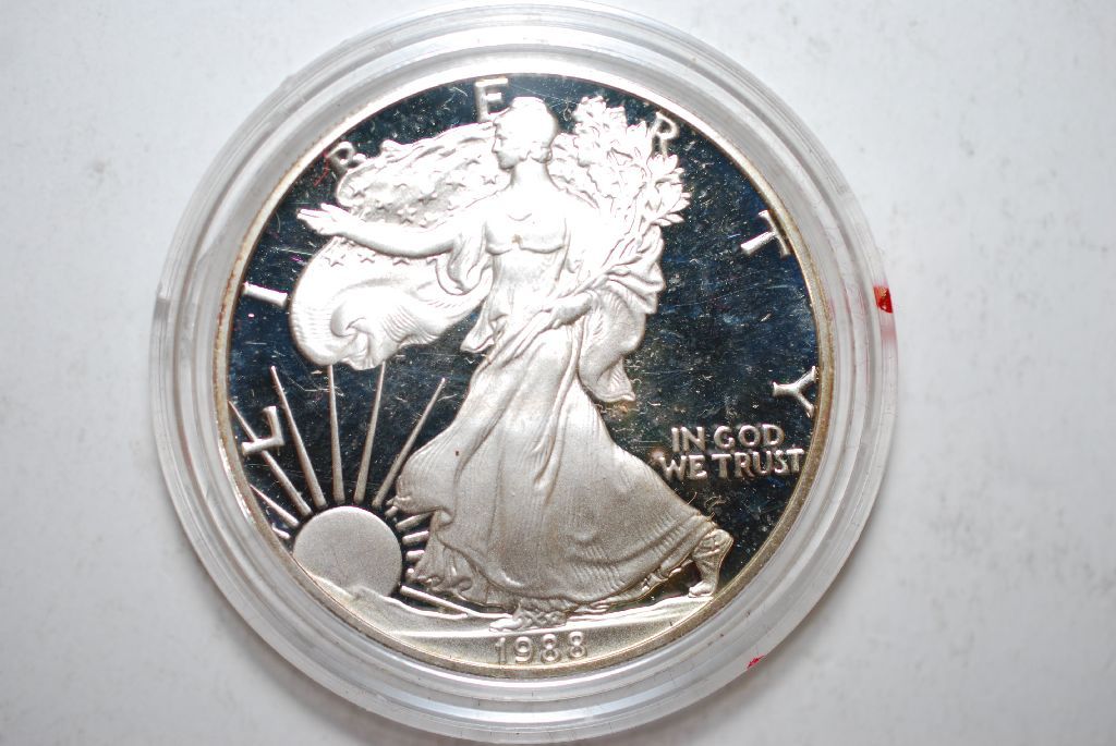 1988-S Silver American Eagle $1 Proof In Velvet Box With COA Included; 99.9% Silver 1 Oz.; EST. $65-70