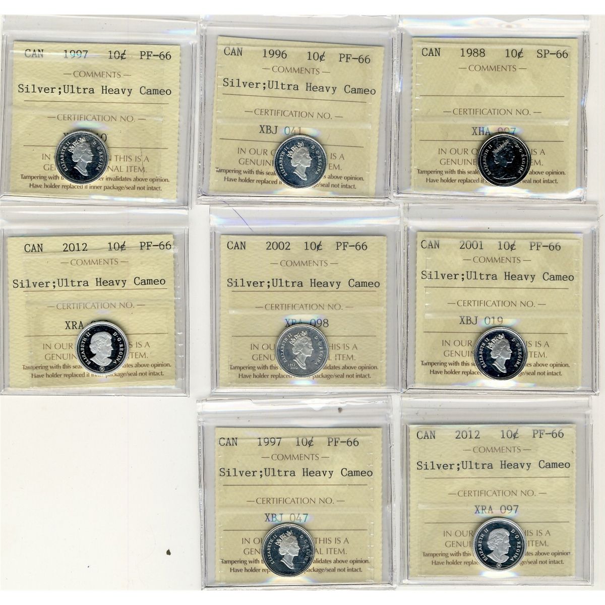 1988 SP66, 1996, 1997, 2001, 2002, 2012; Eight ICCS coins, PF all UHC with some duplicates.