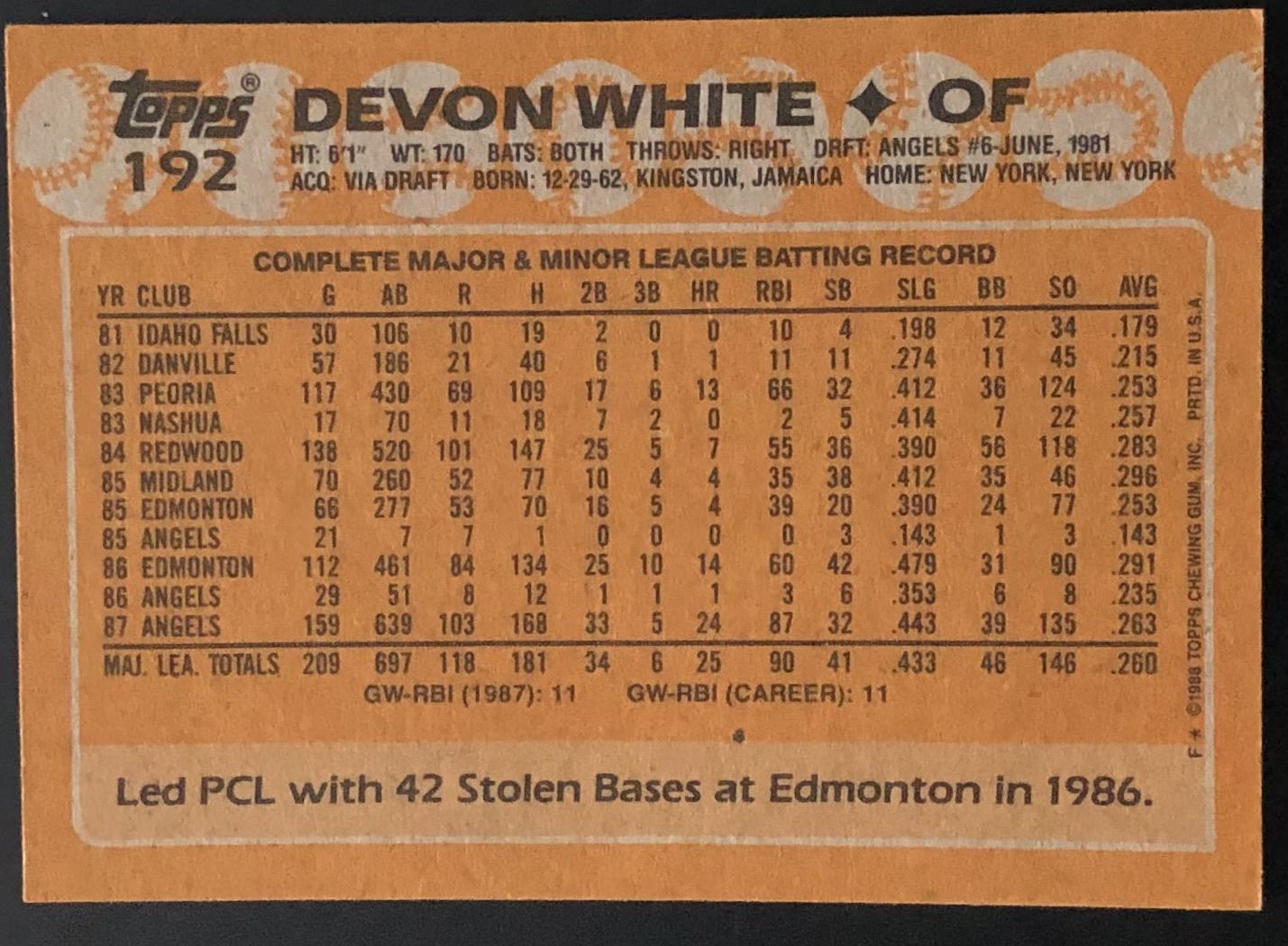 Card #192 MLB, baseball, rookie
