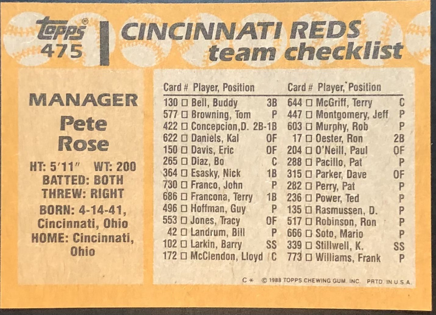Card #475 MLB, baseball
