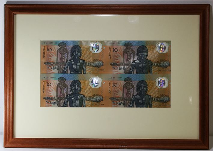 1988 Ten Dollar Block of Four, Mounted and Framed