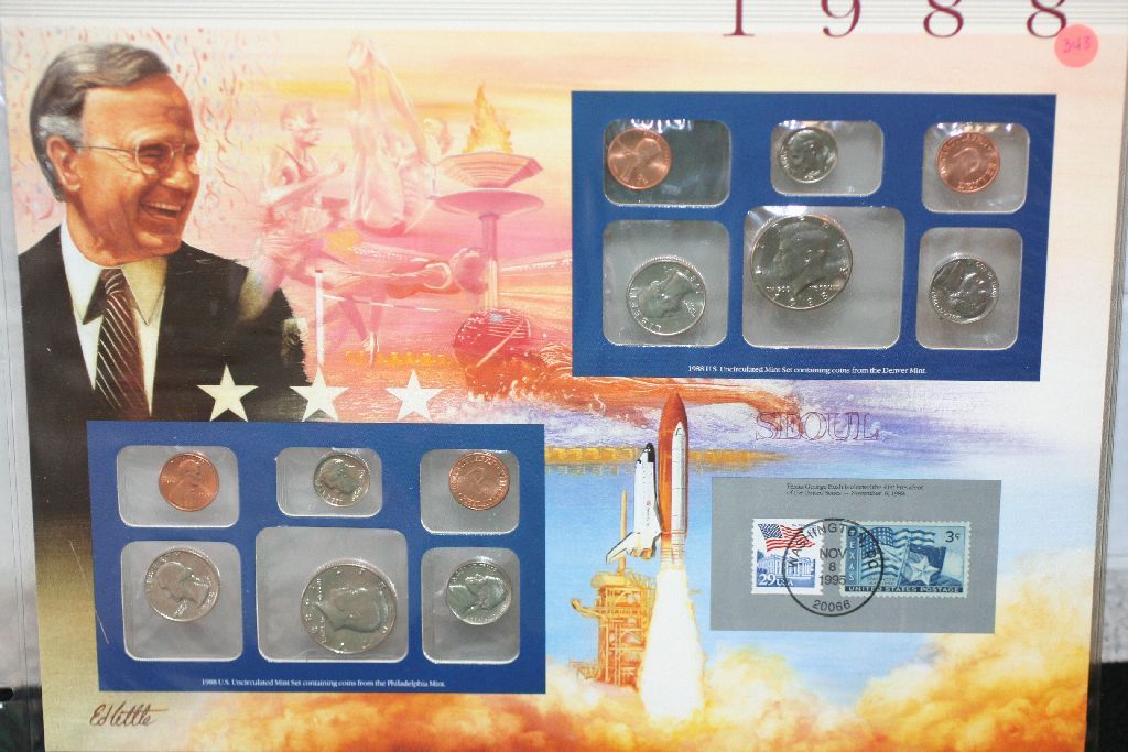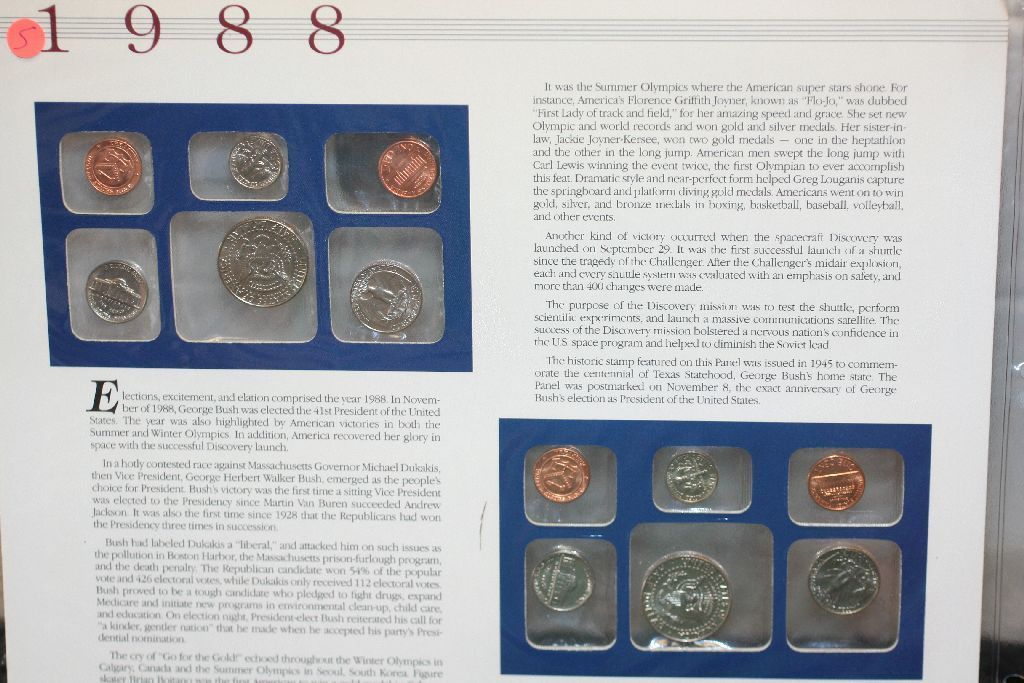 1988 US Mint Coin Set Commerating Texan George Bush Elected President W/Postal Stamps; P&D Mints, UNC Dated 1995