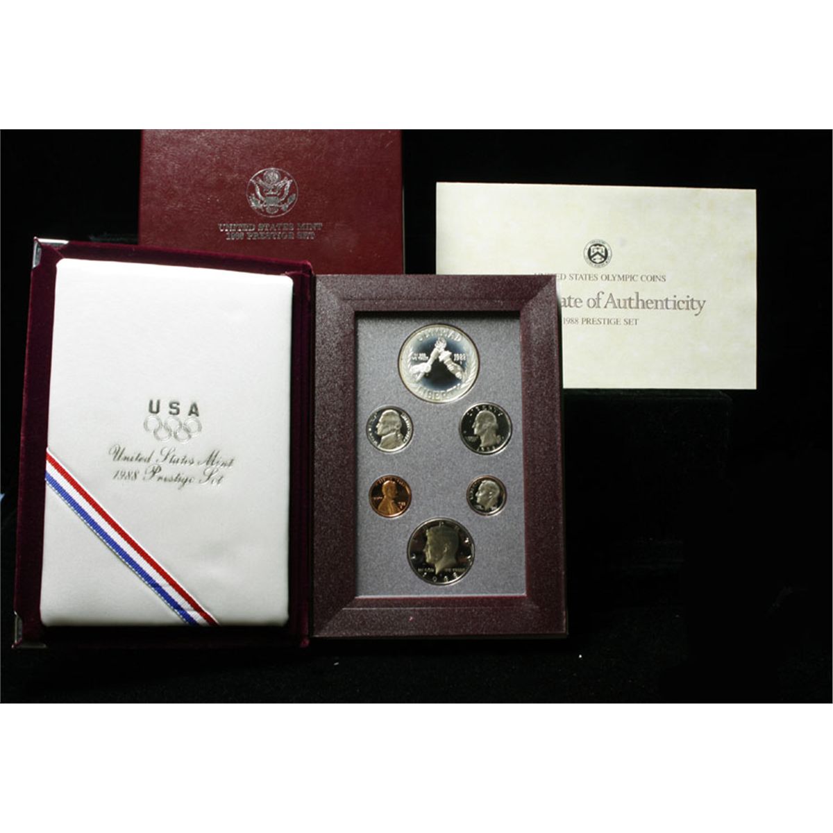 Contains the 1988 Olympic Torch 90% silver US Silver Dollar plus the Traditional 5 pieces 1988 Proof Set. Includes all the original packaging and the COA. Note* The silver Dollar alone has .7736 Oz. of pure silver. Estimated Value $90