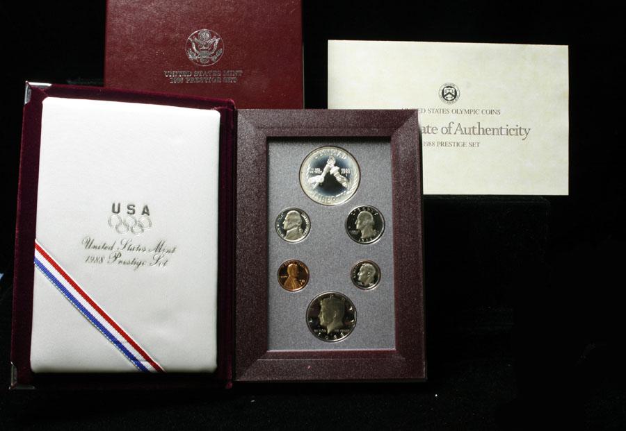 Contains the 1988 Olympic Torch 90% silver US Silver Dollar plus the Traditional 5 pieces 1988 Proof Set. Note at current Silver prices the Bonus Silver Dollar alone in this Set would Melt at over $15.00!
