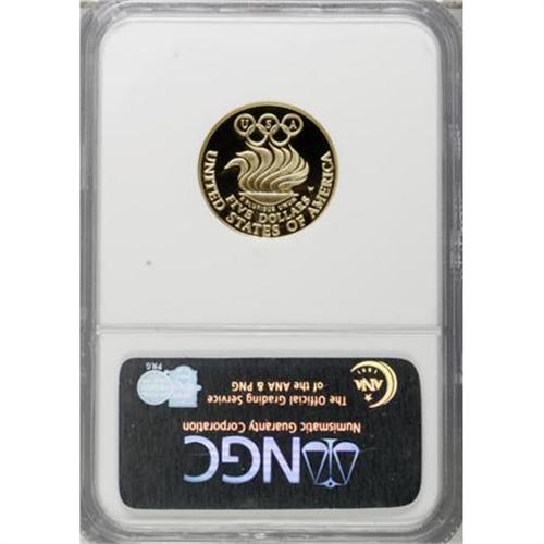 <B>1988-W G$5 Olympic Gold Five Dollar PR70 Deep Cameo NGC.</B></I> NGC Census: (1/0). PCGS Population (28/0). Mintage: 281,000. Numismedia Wsl. Price for NGC/PCGS coin in PR70: $300. (#9631)<BR><BR><b>Shipping:</b> Coins & Currency (<a target="_blank" href="http://www.heritageauctions.com/common/shipping.php">view shipping information</a>)