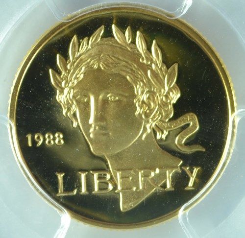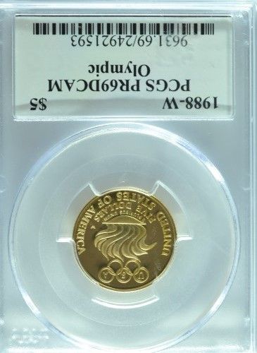 1988-W OLYMPIC $5.00 GOLD COMMEMORATIVE, PCGS PR-69 DCAM