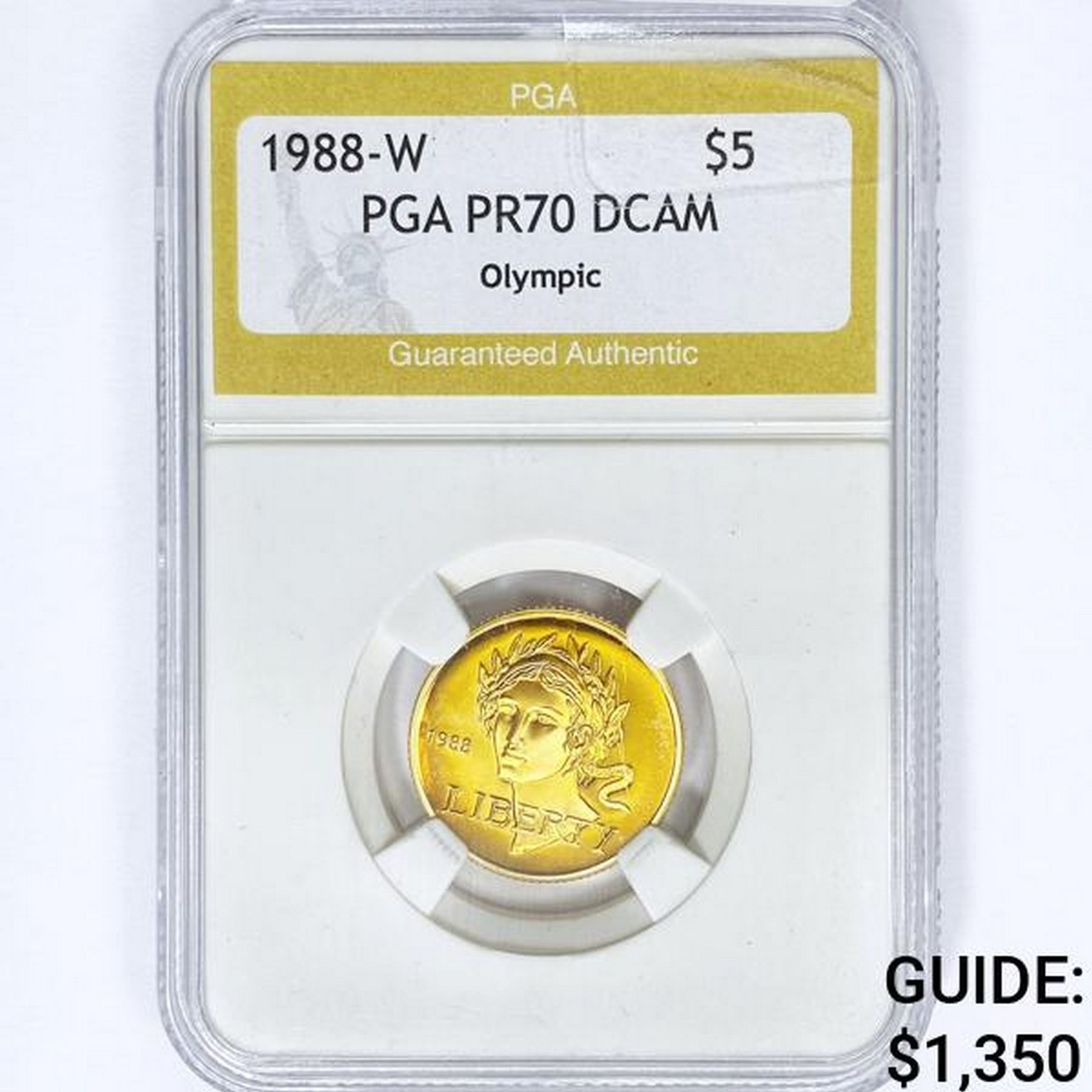 1988-W US $5 1/10oz Gold Olympic PGA PR70 DCAM
