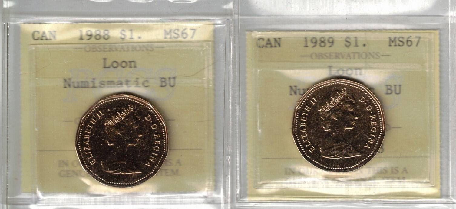 1988 and 1989 $1 Loon PCCS MS67 NBU 2pcs