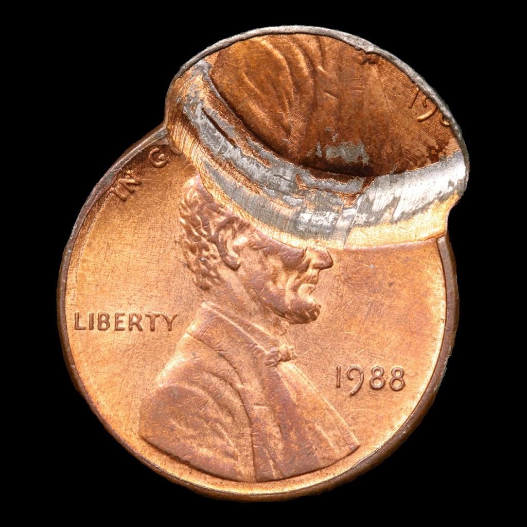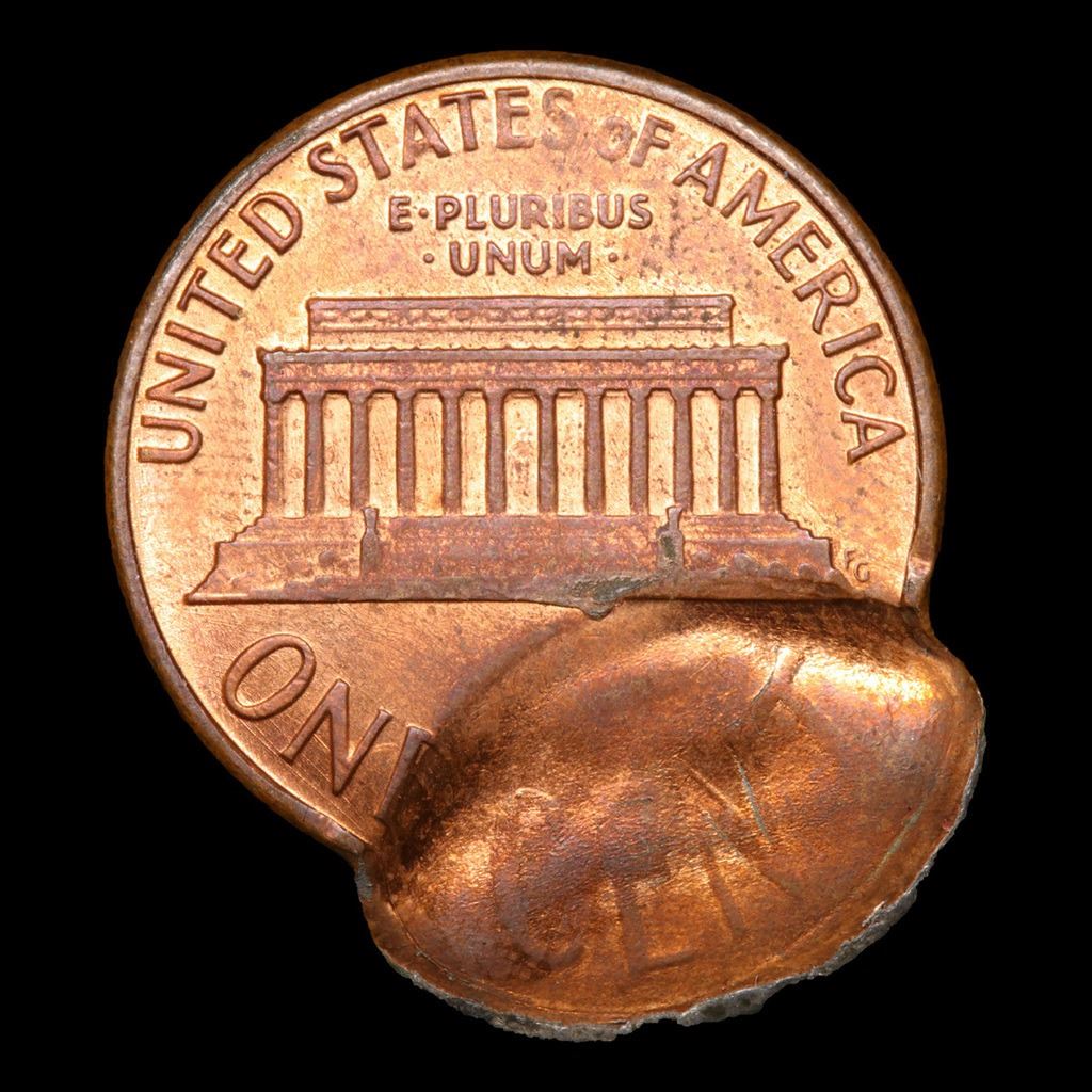 1988-p Mint Error Double Struck; Second Strike struck off center Double Dated Lincoln Cent 1c Grades Select+ Unc RB.