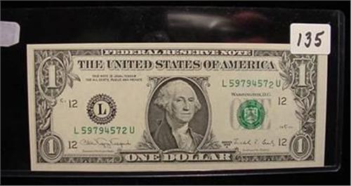 1988A $1.00 FRN Currency Error - Rolled Serial # Digit