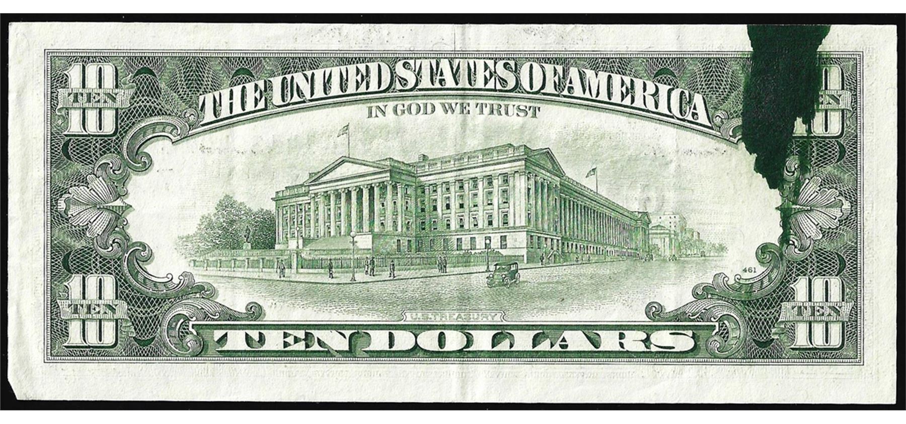 One 1988A $10 Federal Reserve Note Chicago Ink Smear ERROR.