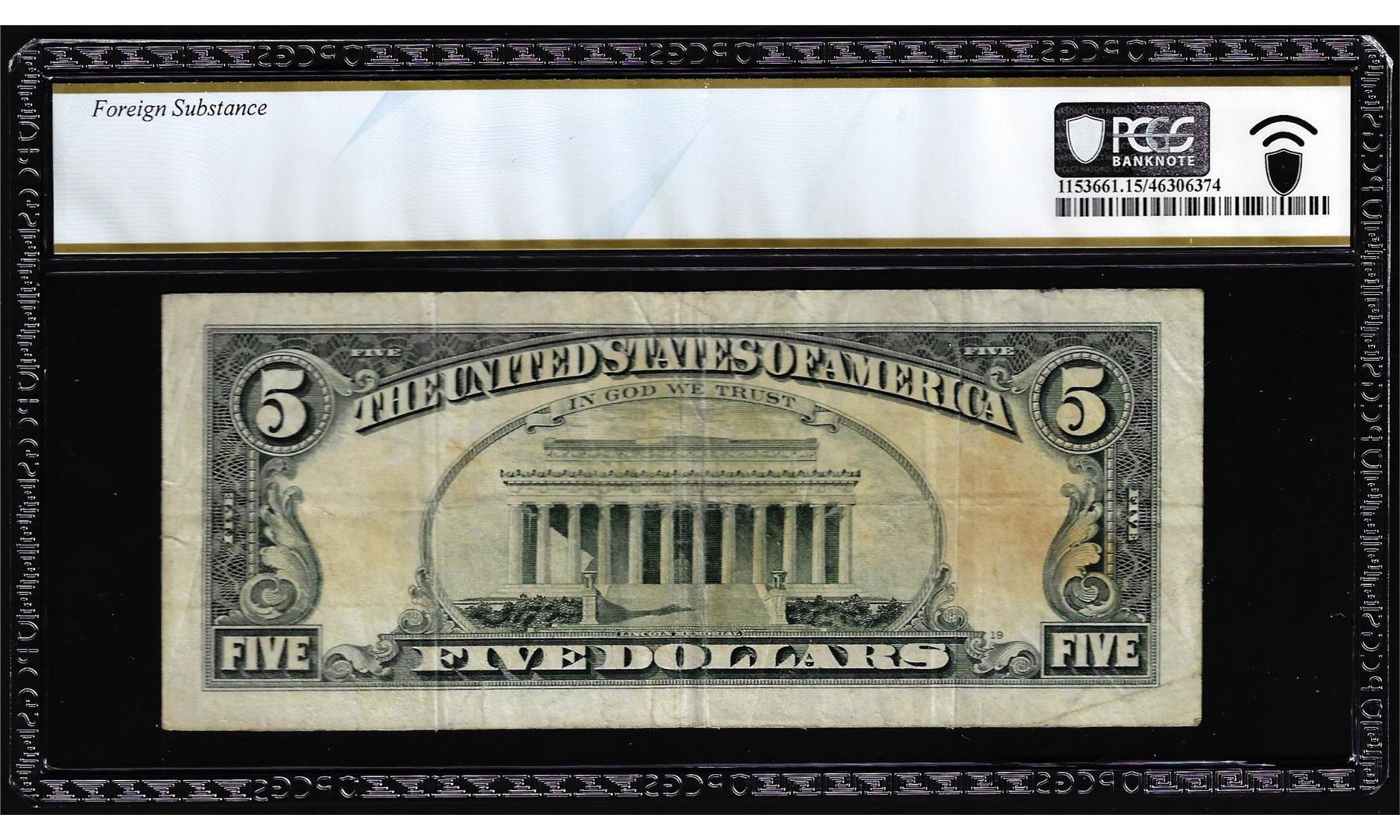 One 1988A $5 Federal Reserve Note Mismatched Serial Number Error PCGS Ch. Fine 15 Details. PCGS Graded.