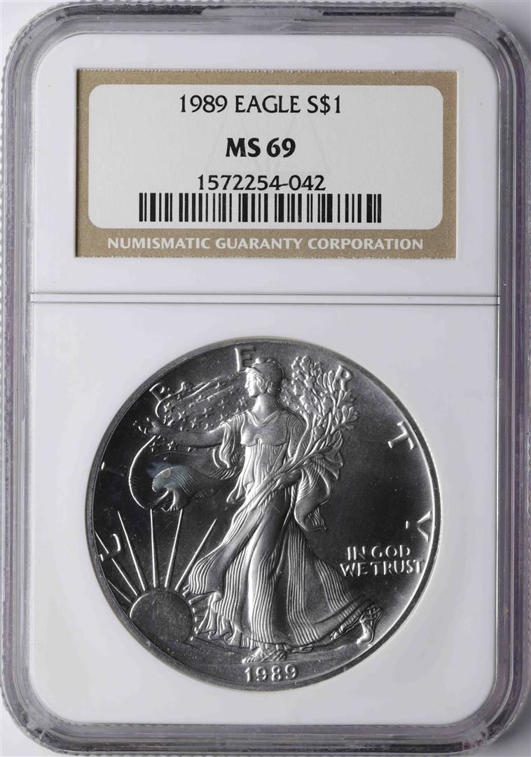 One 1989 $1 American Silver Eagle Coin NGC MS69. NGC Certified.