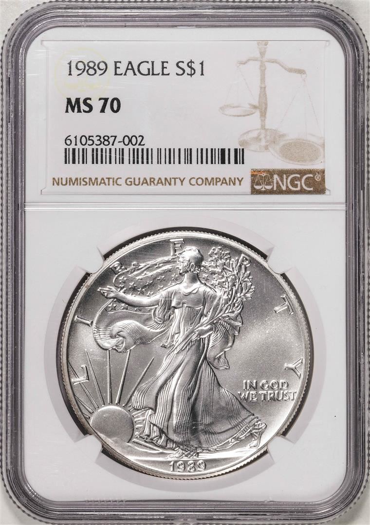 One 1989 $1 American Silver Eagle Coin NGC MS70. NGC Certified.
