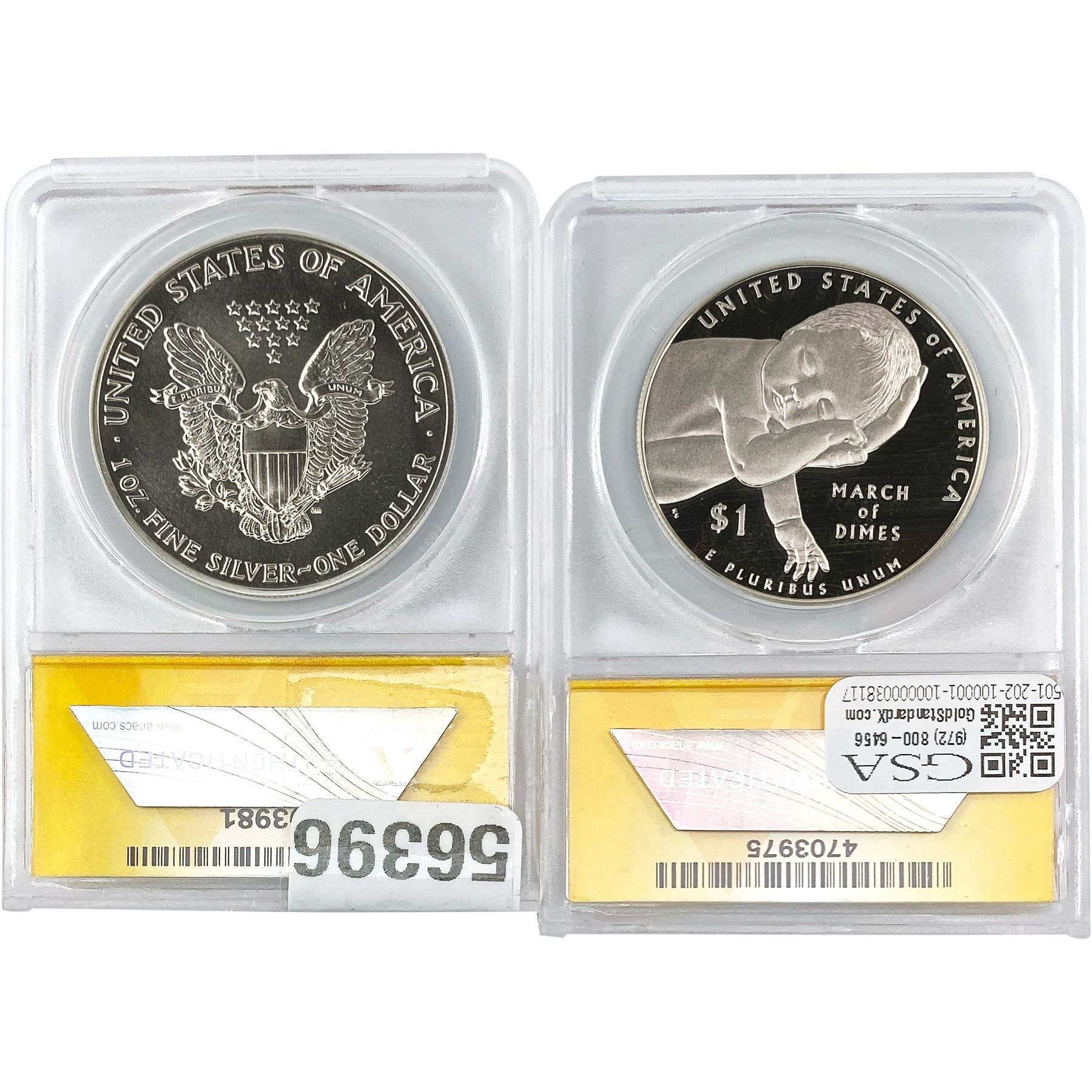 1989 $1 Silv ANACS MS69/ 2015W $1 ANACS PF69
