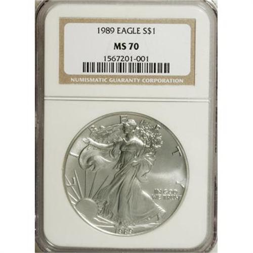 1989 $1 Silver Eagle MS70 NGC. NGC Census: (263/0)