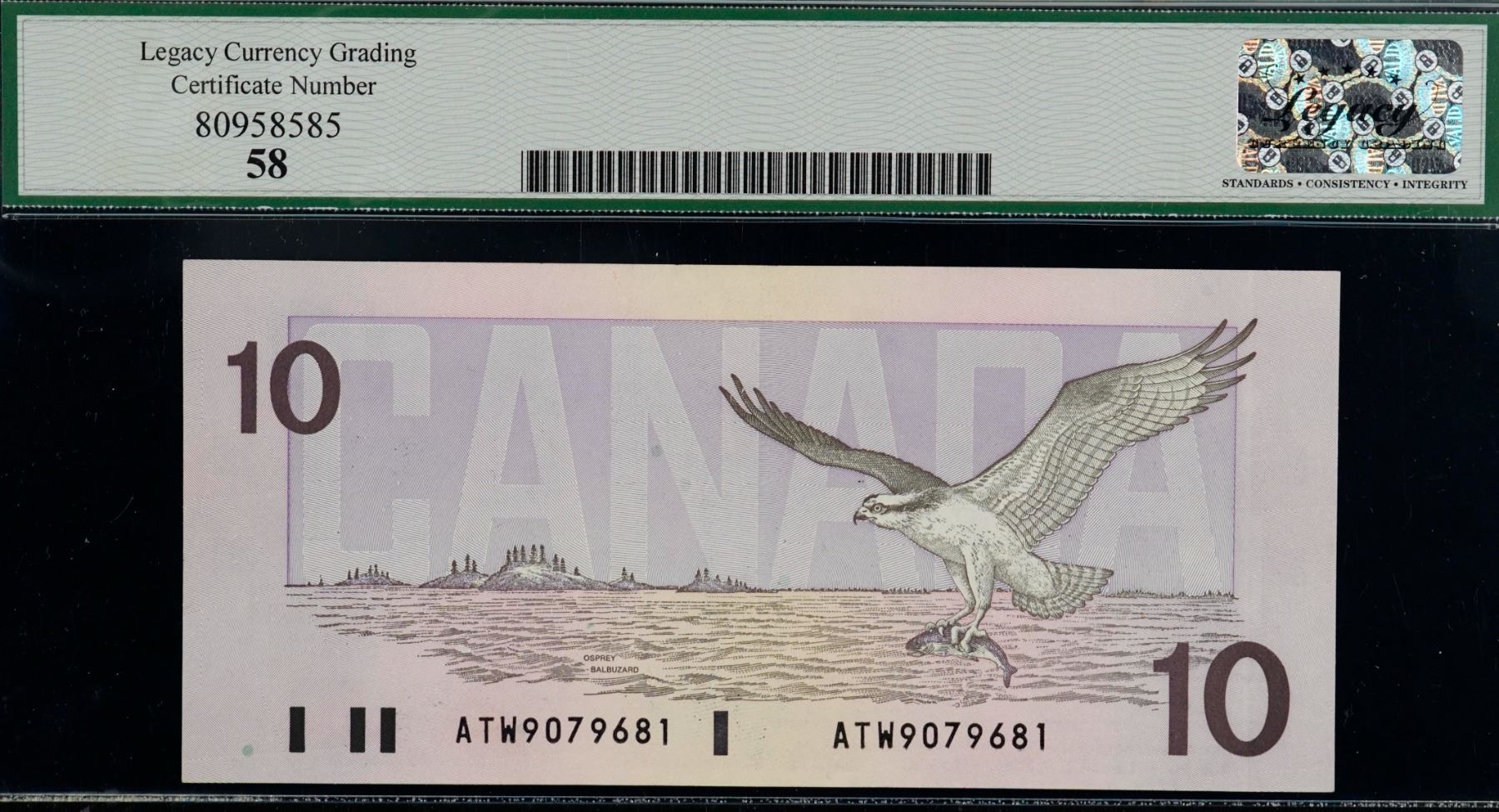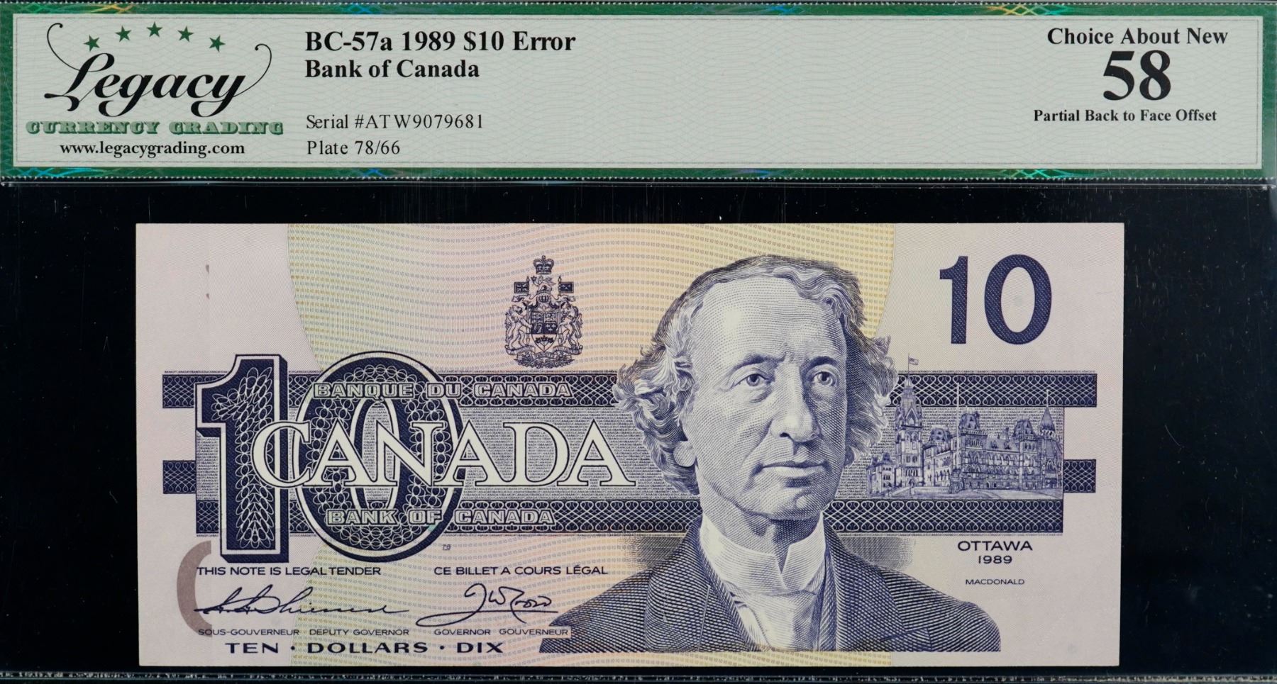 1989 $10 BC-57a #ATW90779681 Legacy Currency Grading Choice About Uncirculated-58 "Partial Back to Face Offset"