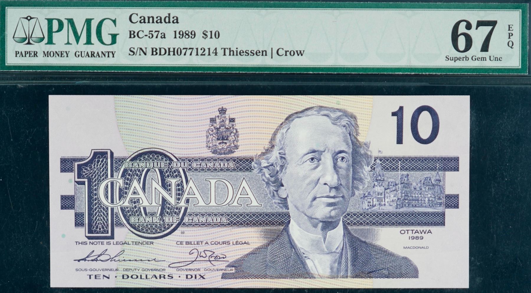1989 $10 BC-57a #BDH0771214 PMG Superb Gem Uncirculated-67