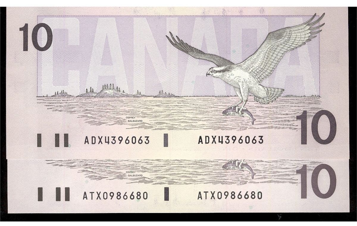 1989 $10 BC-57aA #ADX4396063 & ATX0986680. Lot of 2 Crisp UNC notes.