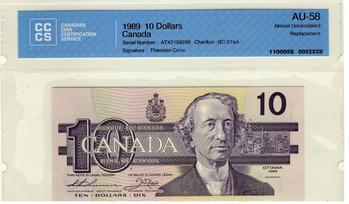1989 $10 BC-57aA #ATX2158299 CCCS AU58