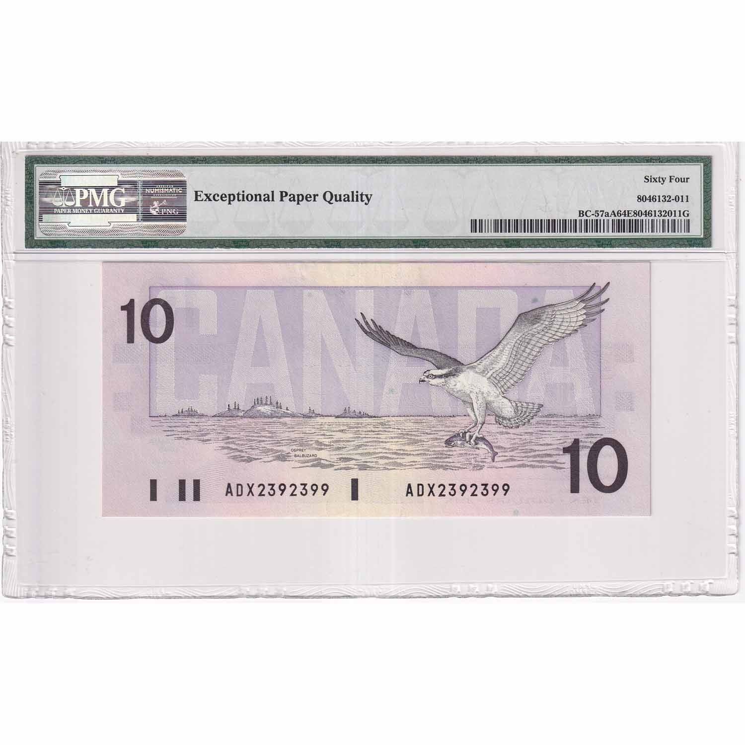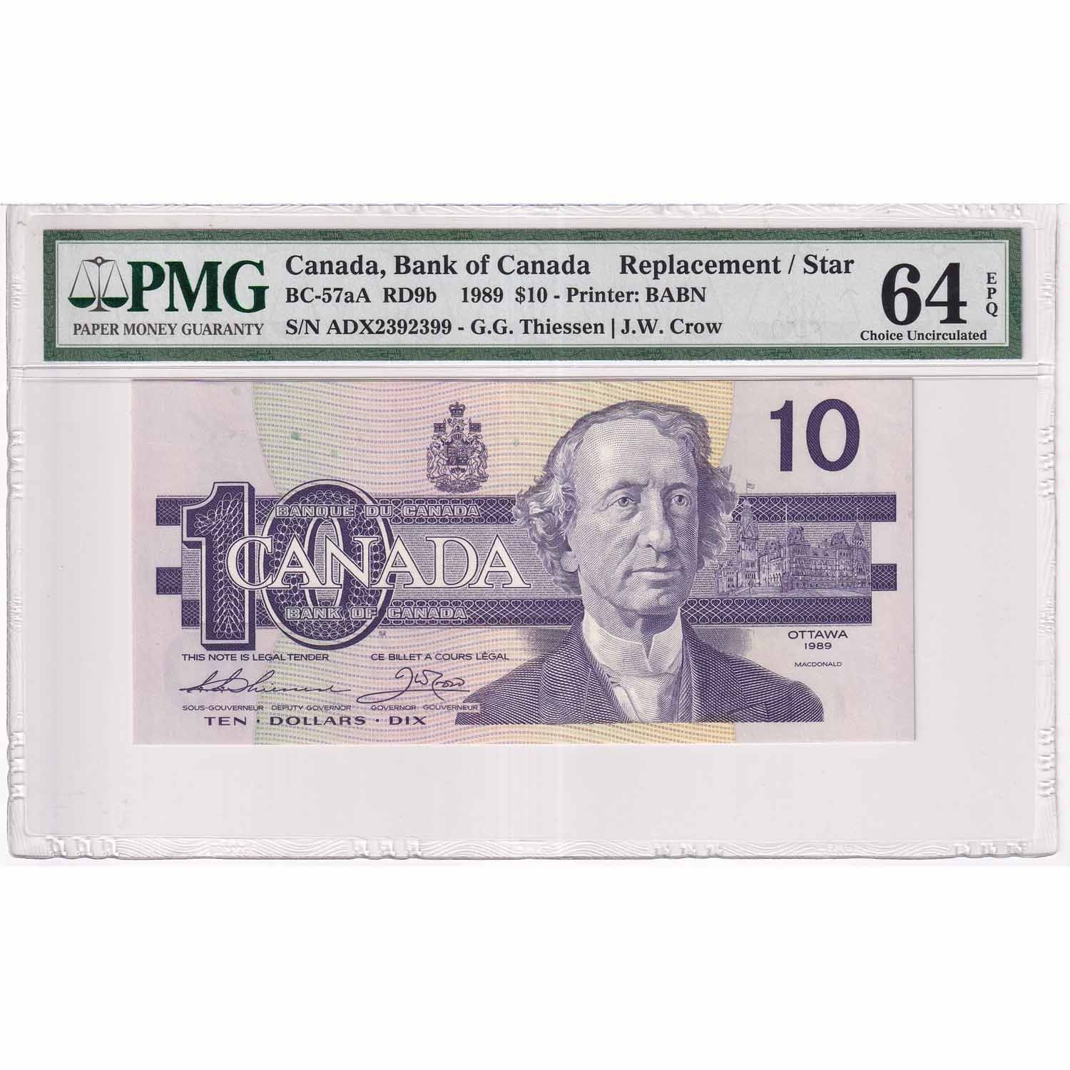 1989 $10 BC-57aA RD9b, Bank of Canada, Thiessen-Crow, Printer: BABN, ADX Replacement PMG Certified CUNC-64