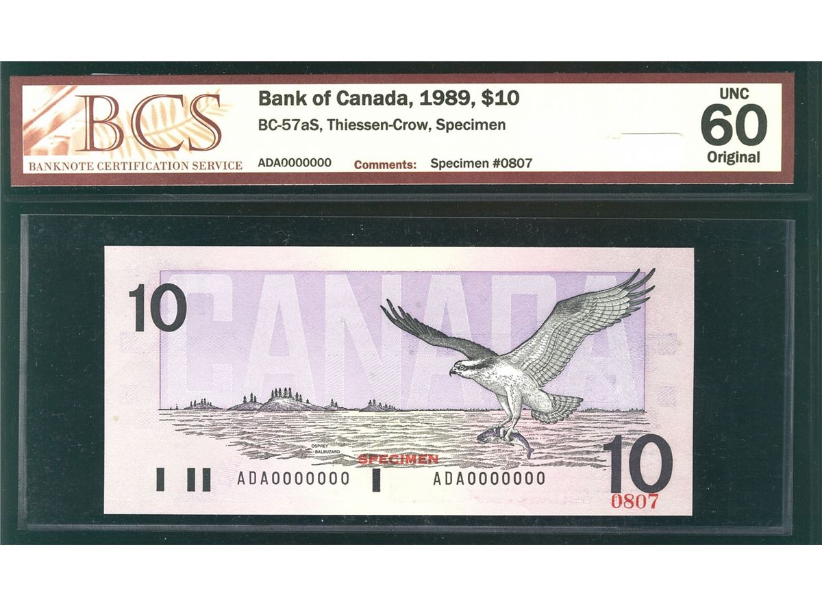 1989 $10 BC-57aS Specimen #0807 BCS UNC60 Original.