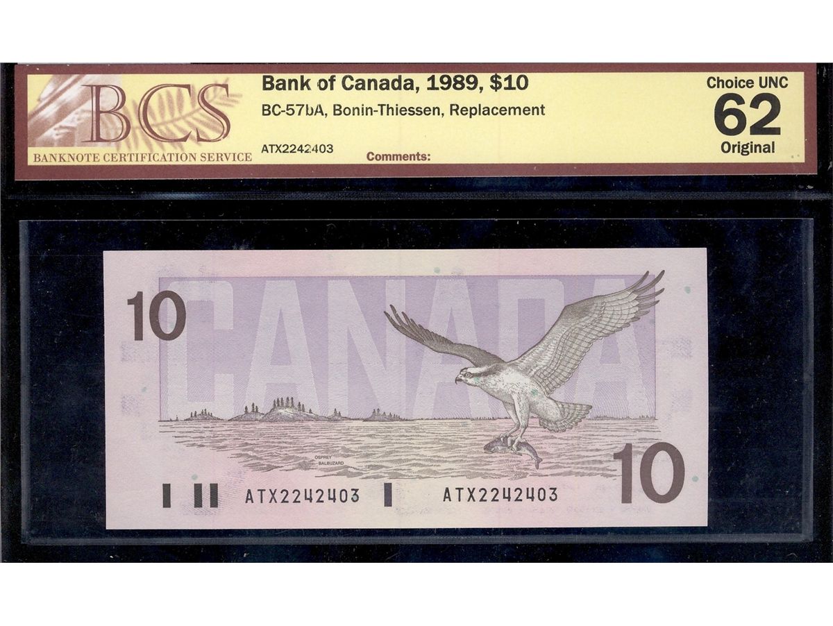 1989 $10 BC-57bA, #ATX2242403, BCS Certified CUNC-62, Original