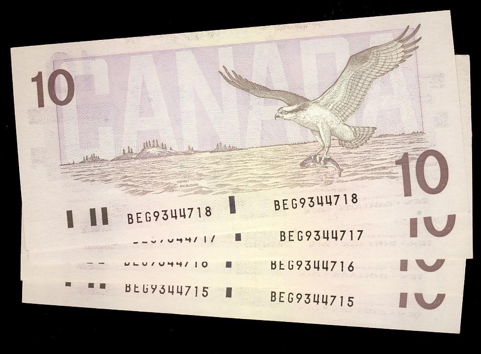 1989 $10 BC-57c #BEG9344715-718. Lot of four consecutive notes. All crsip UNC.