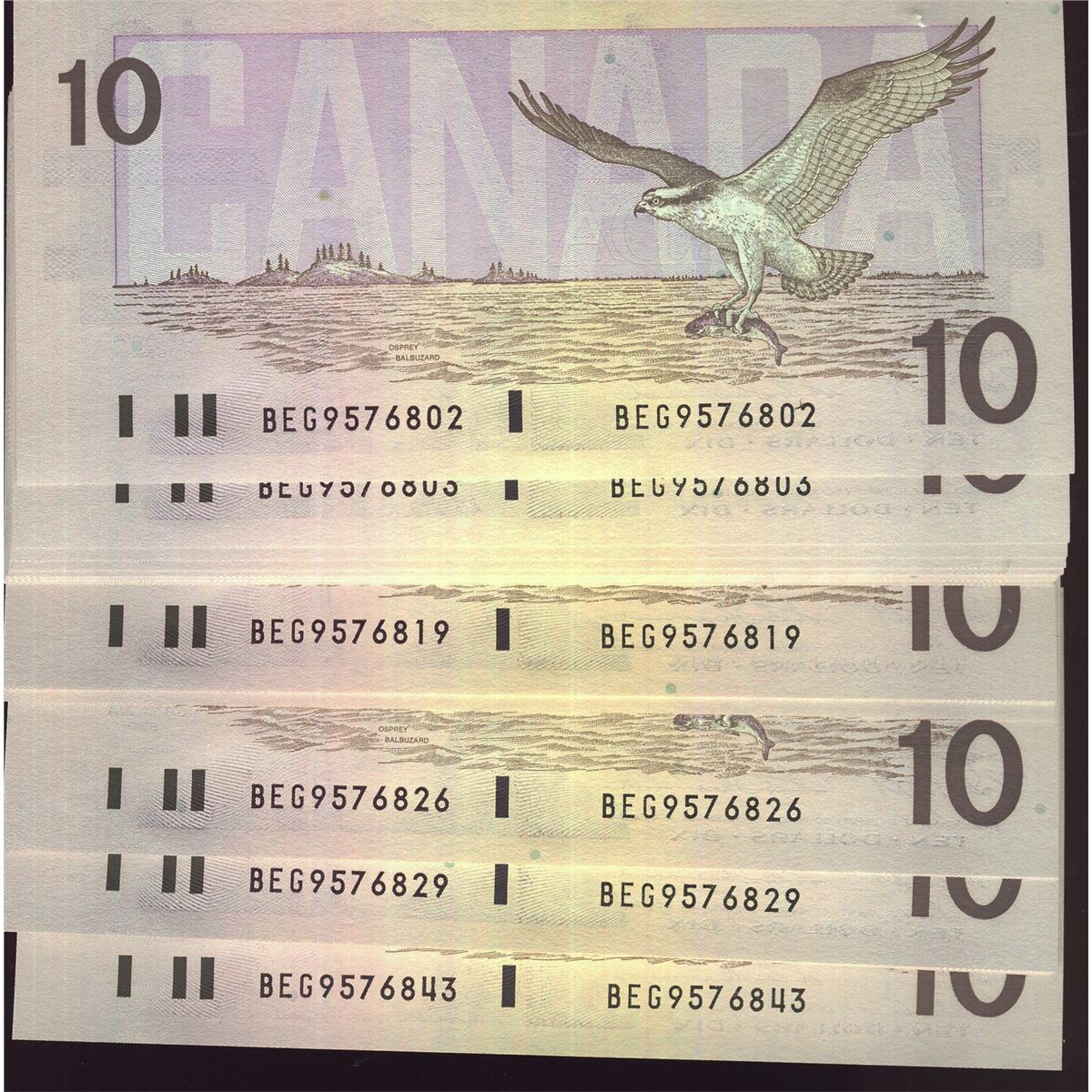 1989 $10 BC-57c #BEG9576802to843, lot of 41 cons. All UNC.