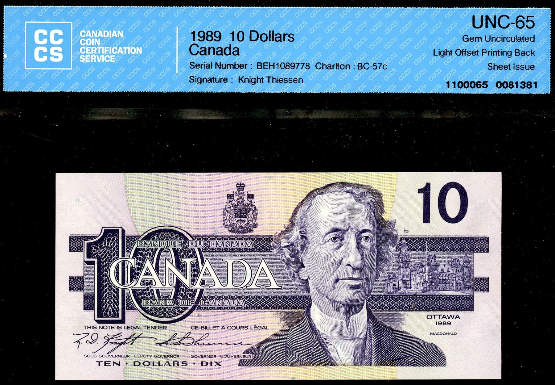 1989 $10 BC-57c #BEH1089778, CCCS Gem Uncirculated-65.