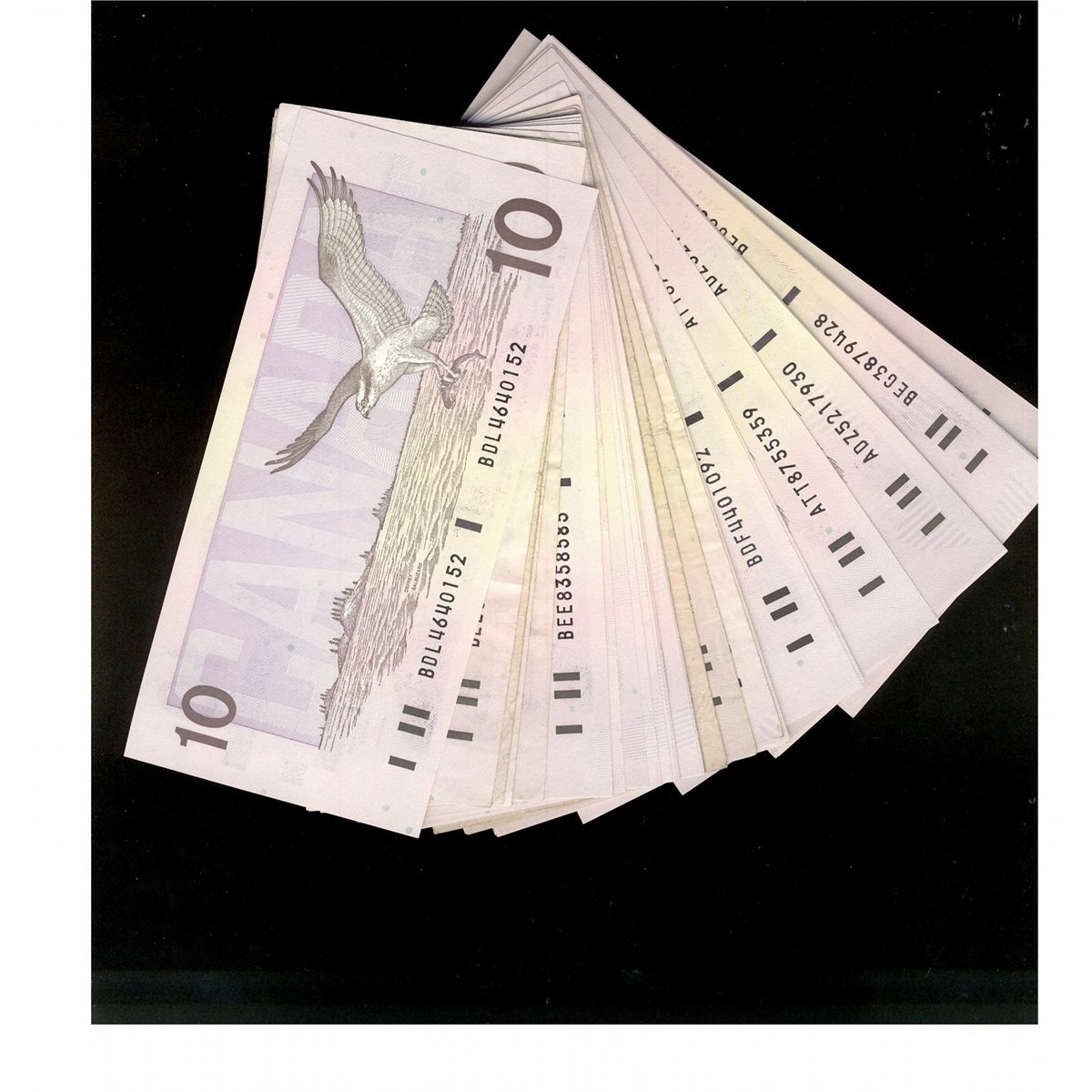 1989 $10 Banknote Lot; includes BC-57a(18), BC-57b(19) & BC-57c(12). Nice Lot VG to UNC, with mainly all UNC issues.