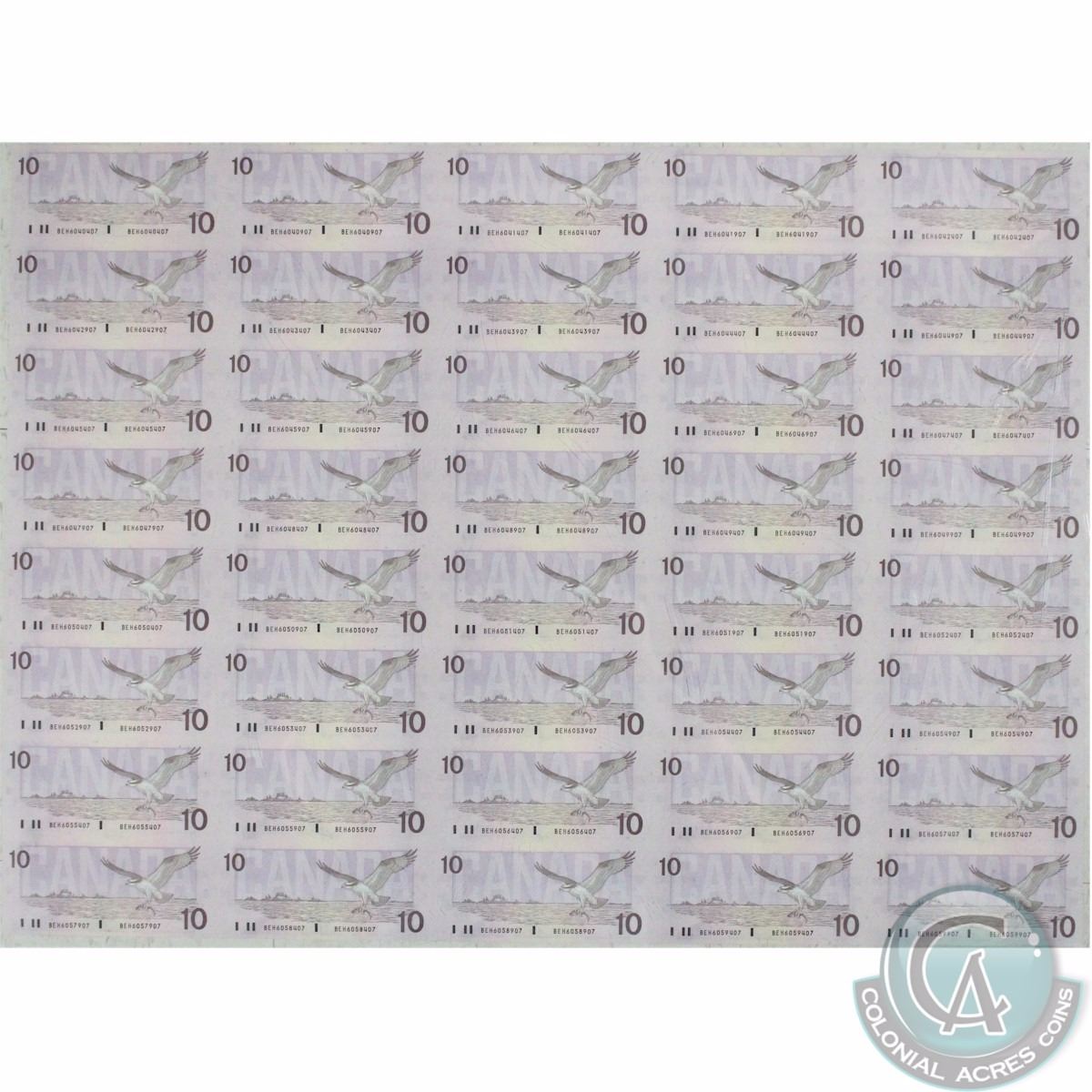 1989 $10 Uncut sheet of 40; 5 x 8 format, prefix BEH (minor bend in the body of the sheet that extends approximately 1/3 the way across)