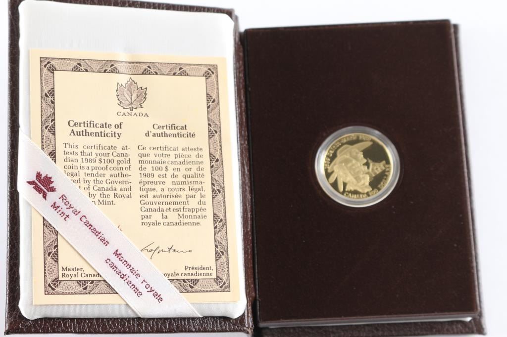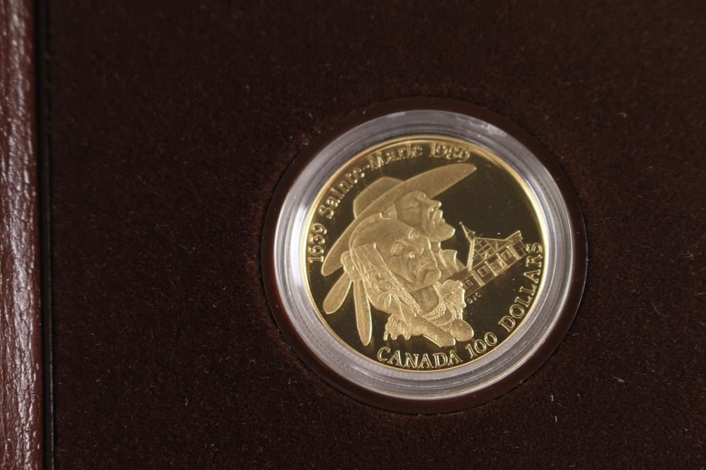 1989 - $100 Canadian Sainte - Marie Gold Proof Coin. 22k - 91.66% gold, 8.34% fine silver. Minted Royal Canadian Mint.
