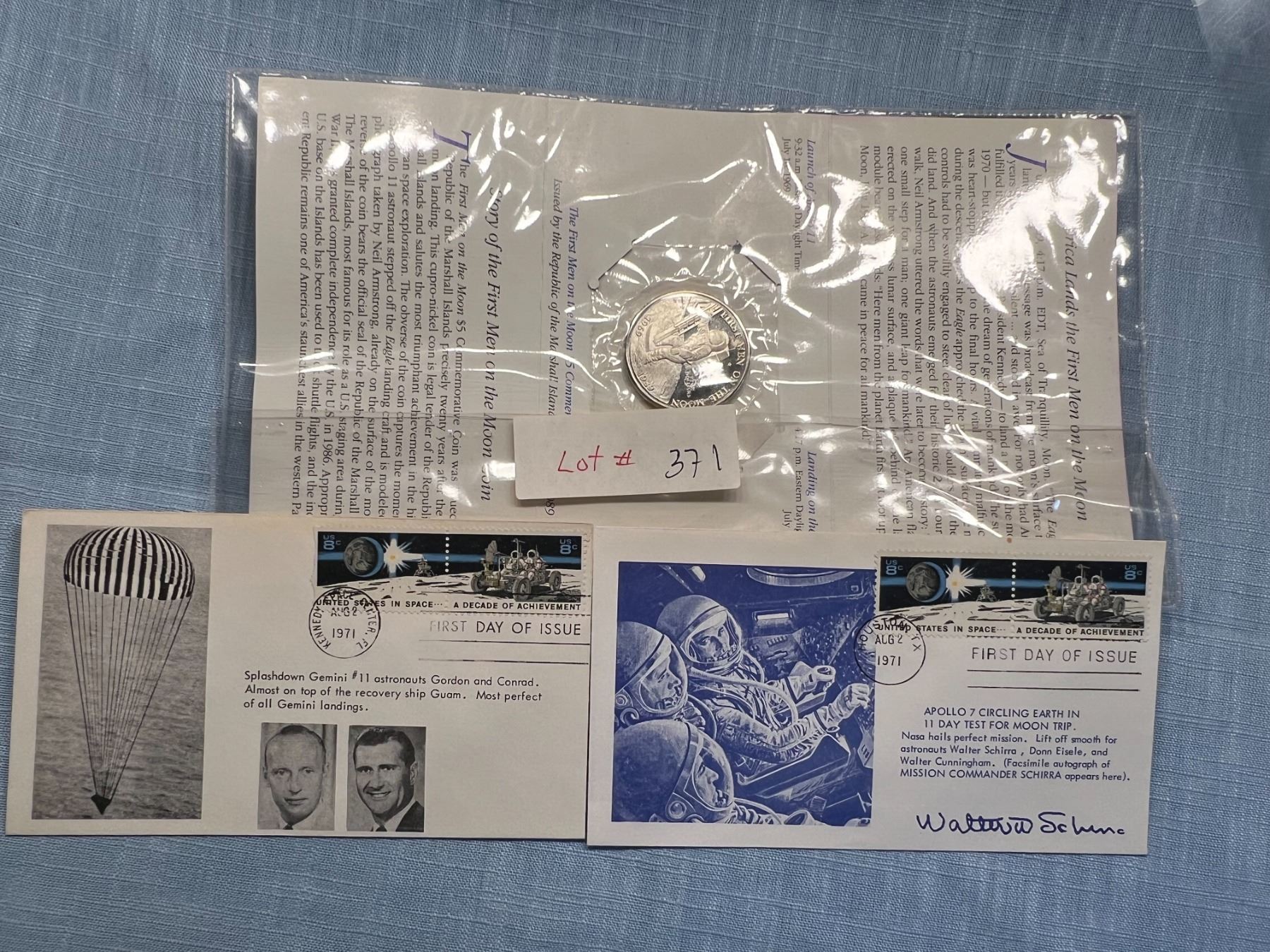 1989-1969 First Men on the Moon $5 Commemorative Coin Plus 2Fisrt day Cover