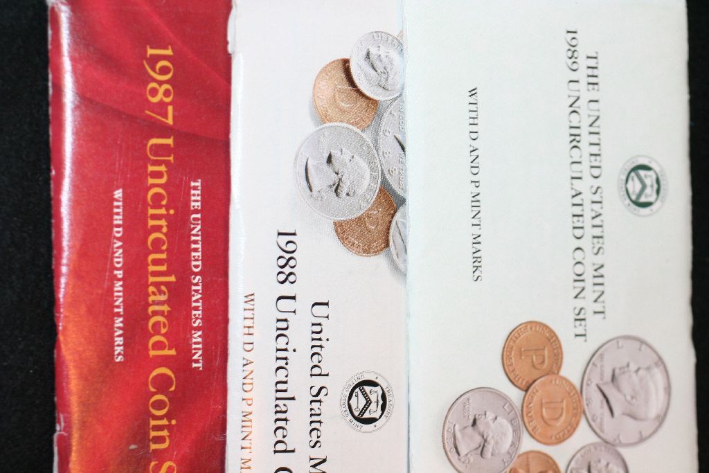 1989, 1988 & 1987 US Mint Coin Set; P&D Mints; UNC, Lot of 3