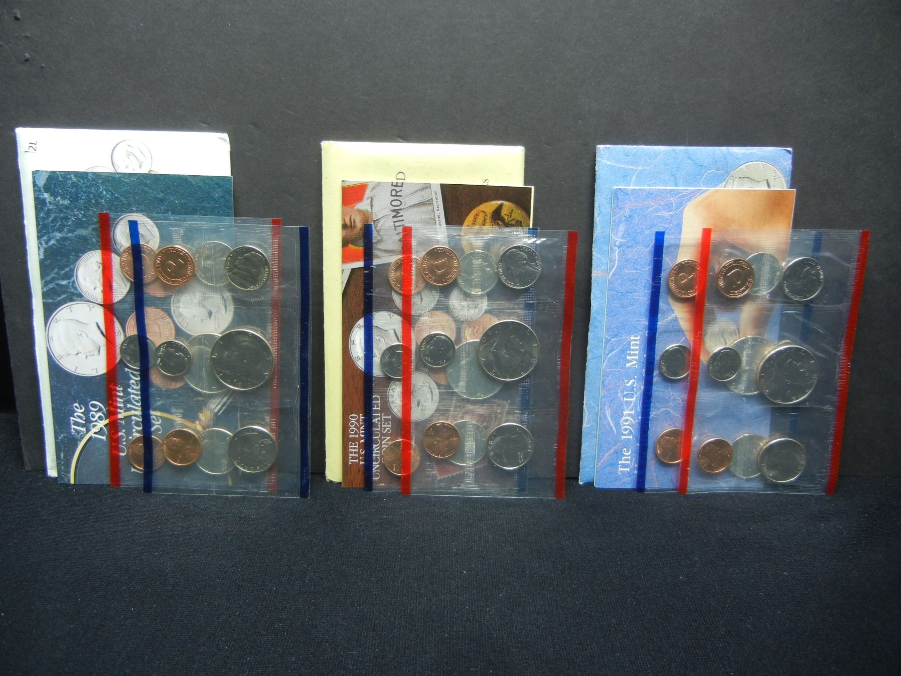 1989 1990 1991 United States 10-Coin Mint Sets With Original Gov't Packaging.