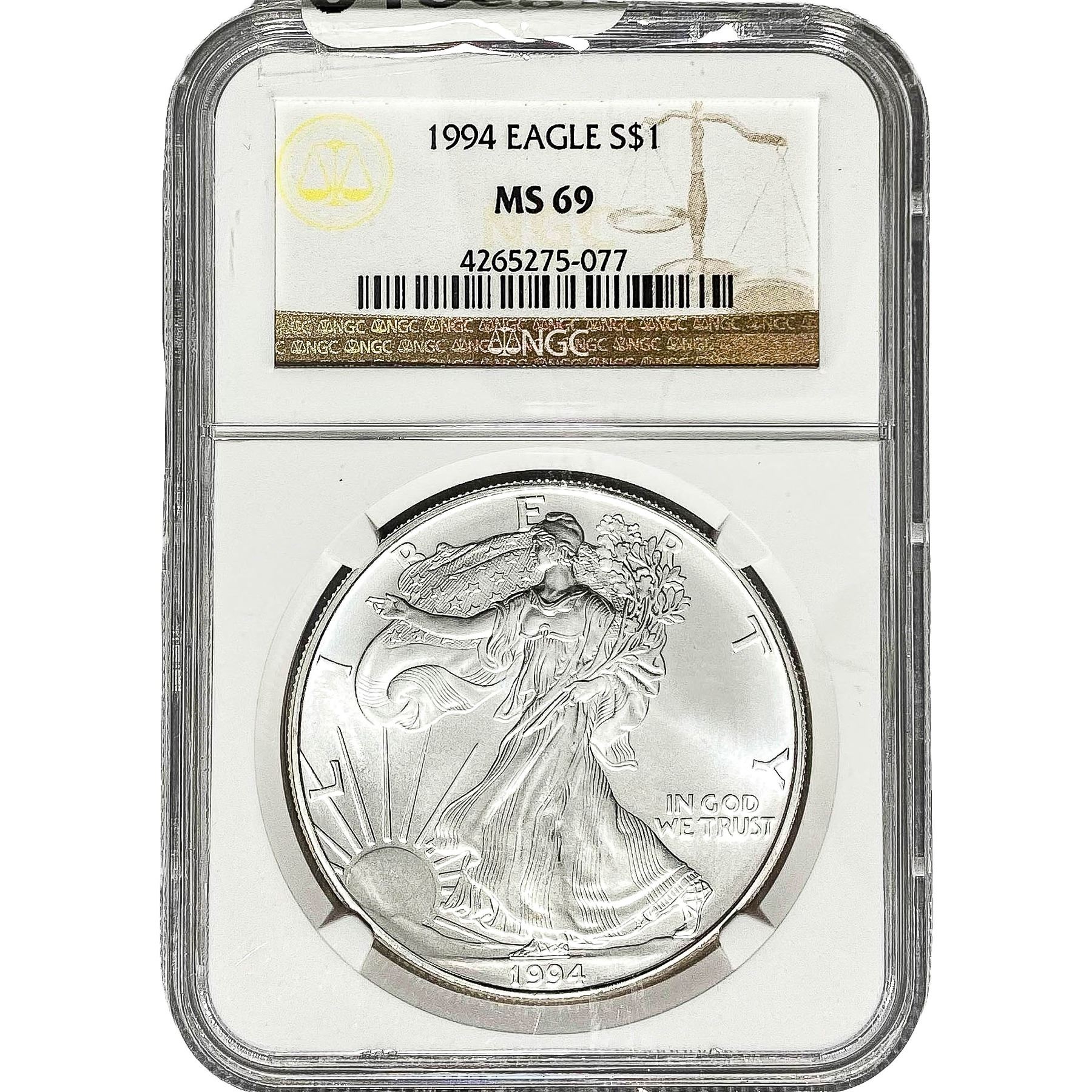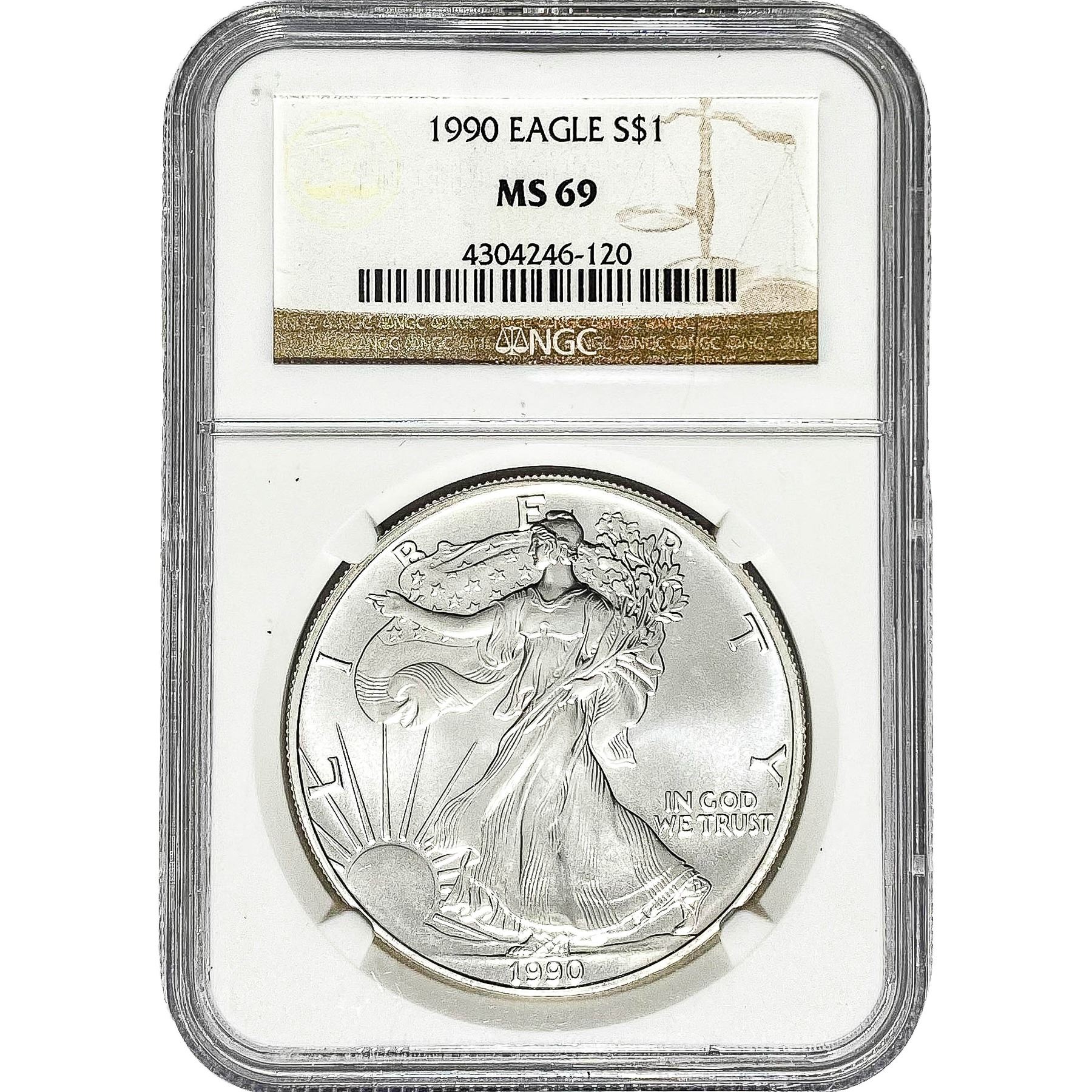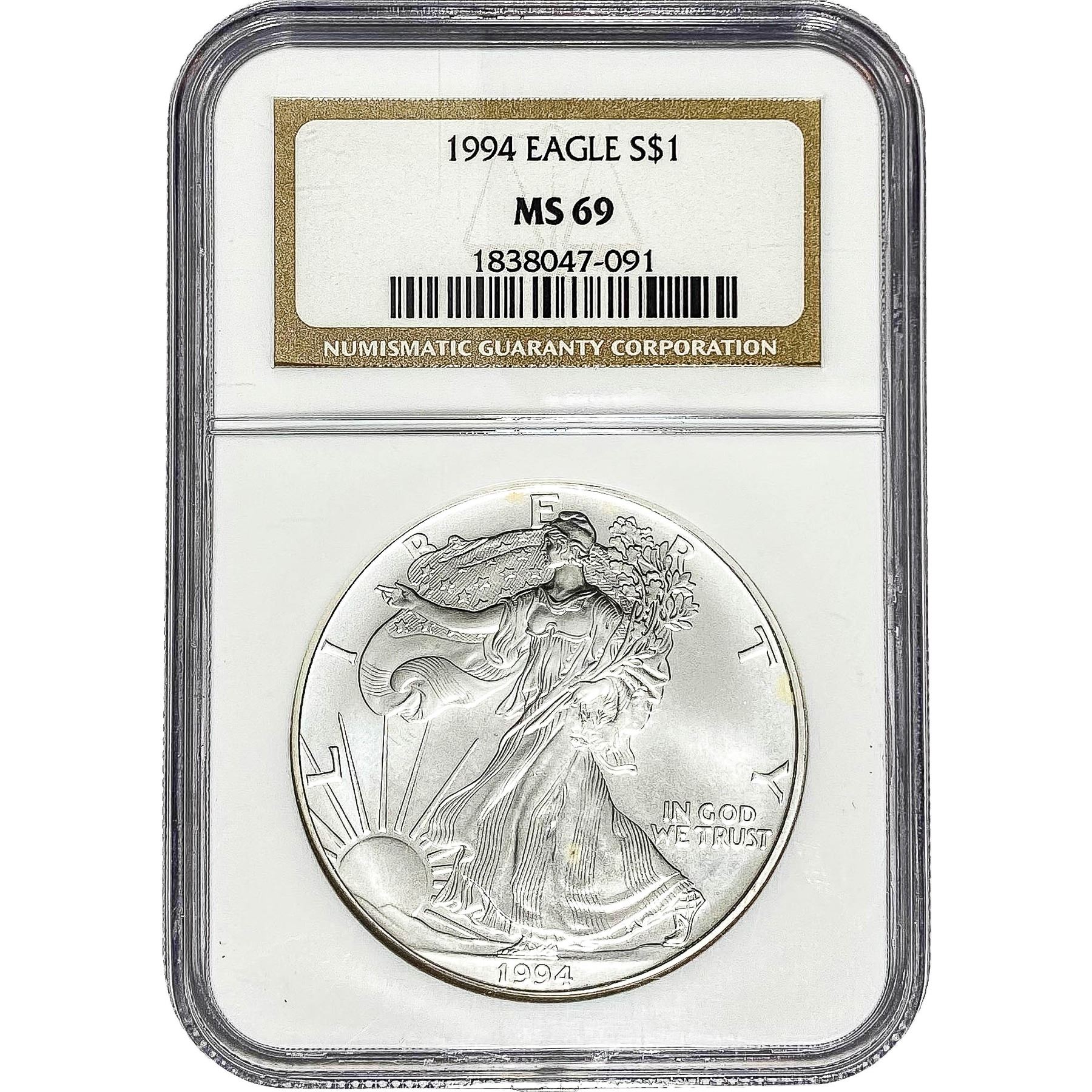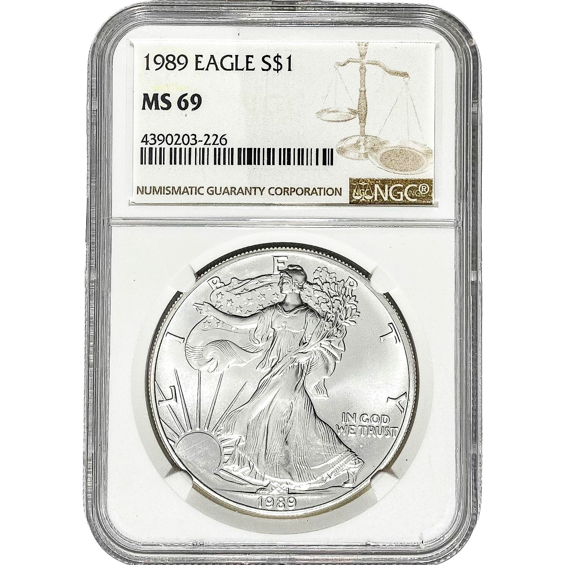 1989-1994 GEM BU US Silver Eagle Lot [4 Coins] NGC MS69