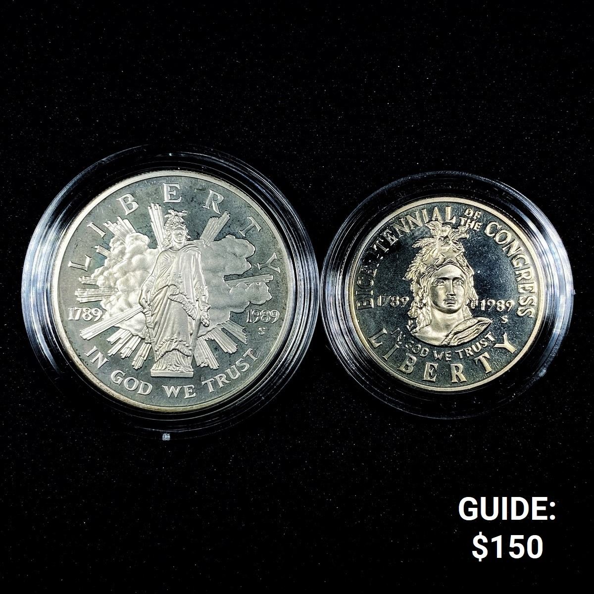 1989 (2) US Congressional Coins /w Cert - GEM BU