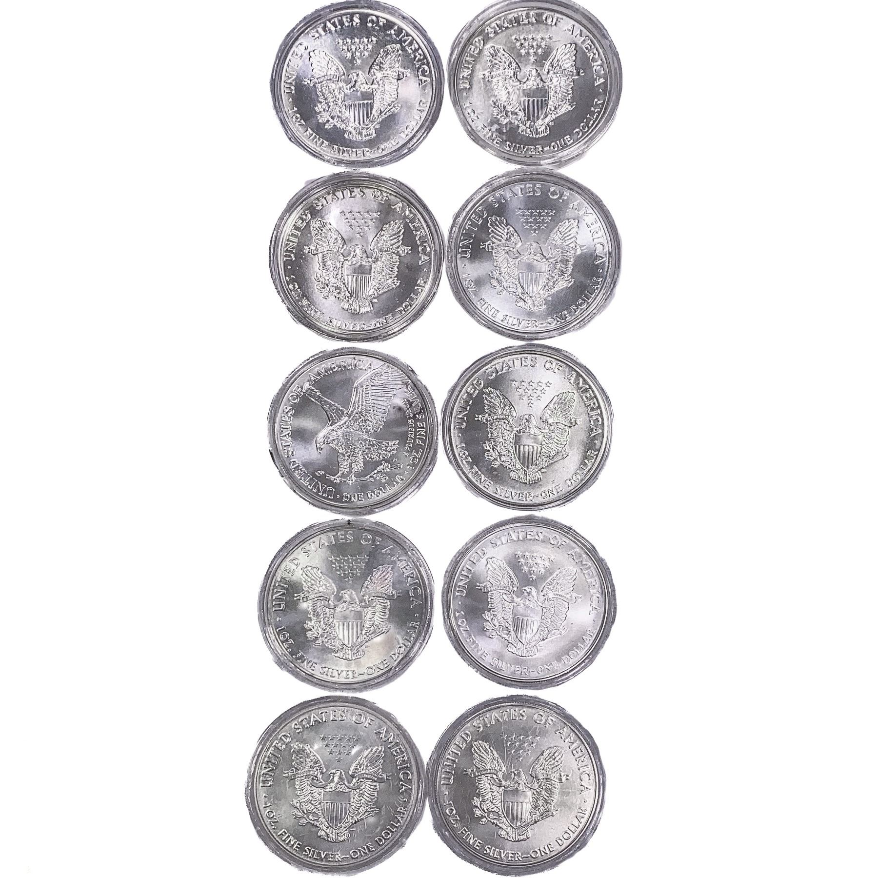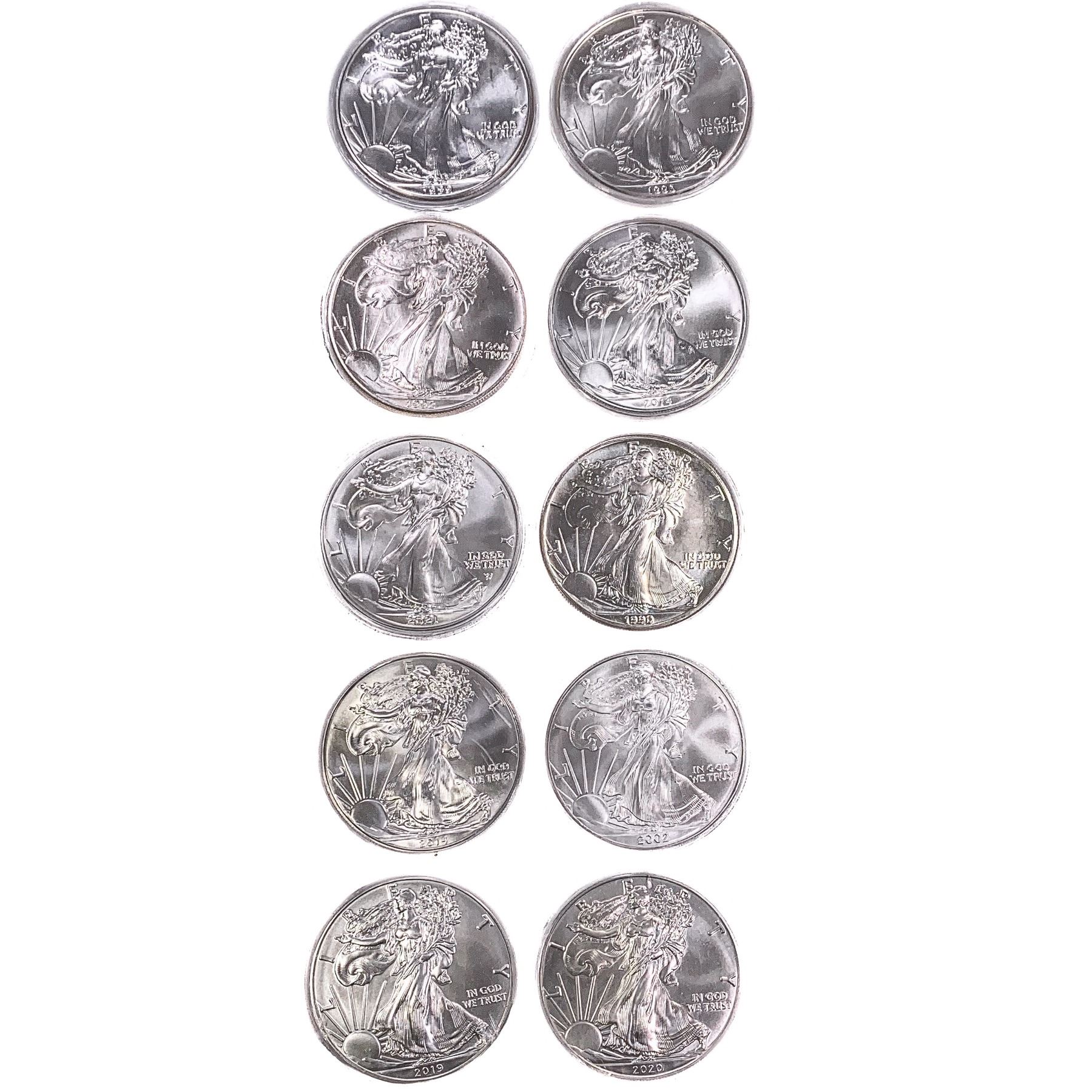 1989-2021 US 1oz Silver Eagles UNC [10 Coins]