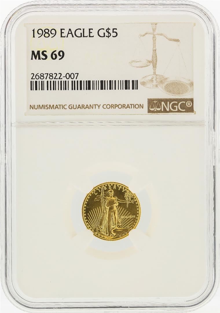 One 1989 $5 American Gold Eagle Coin NGC Graded MS69. NGC Certified.