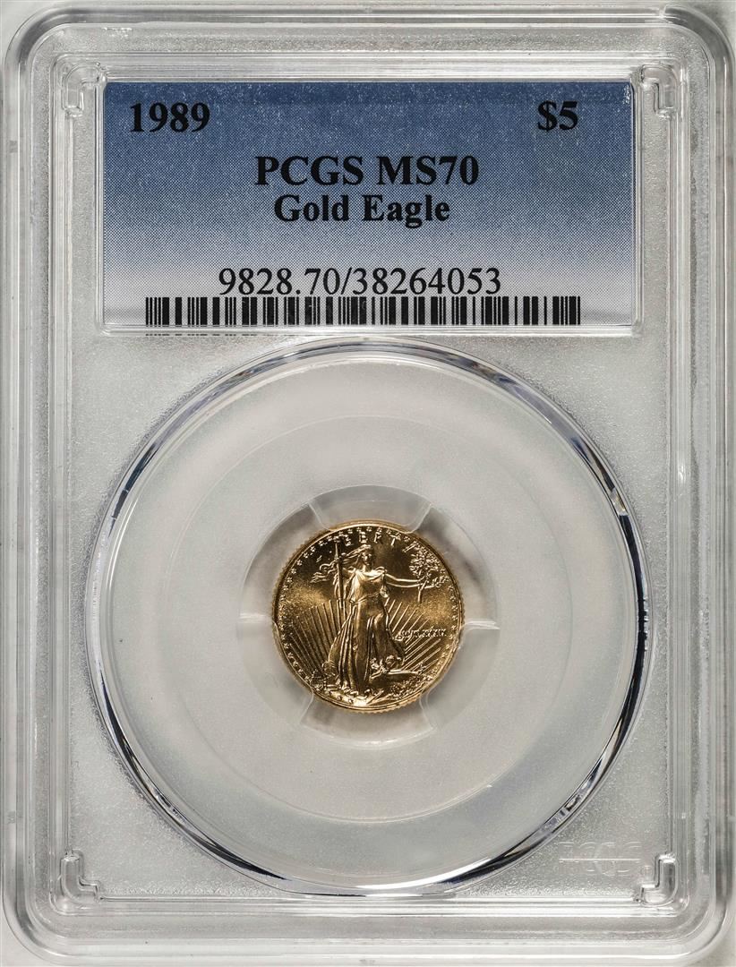 One 1989 $5 American Gold Eagle Coin PCGS MS70. PCGS Graded.