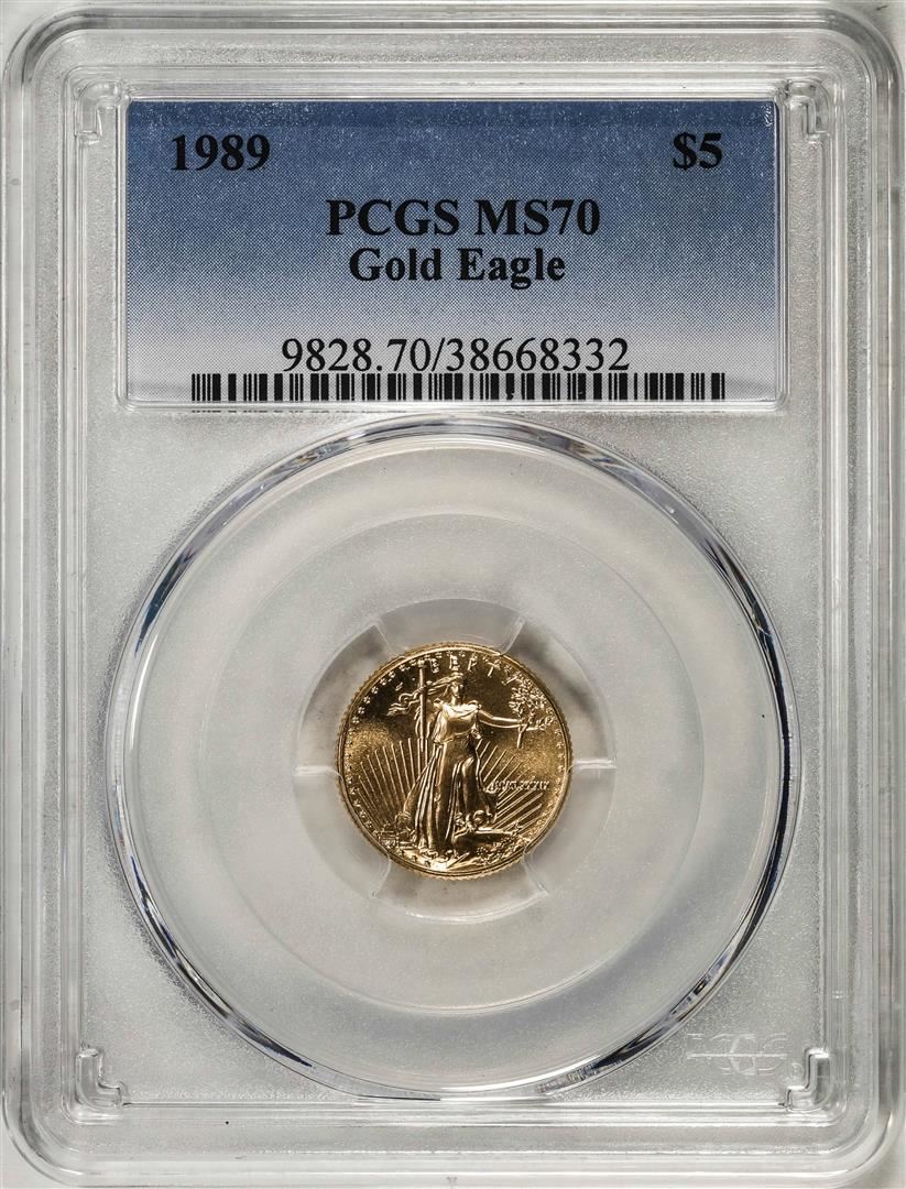 One 1989 $5 American Gold Eagle Coin PCGS MS70. PCGS Graded.