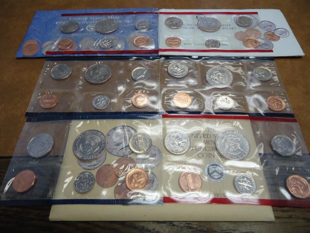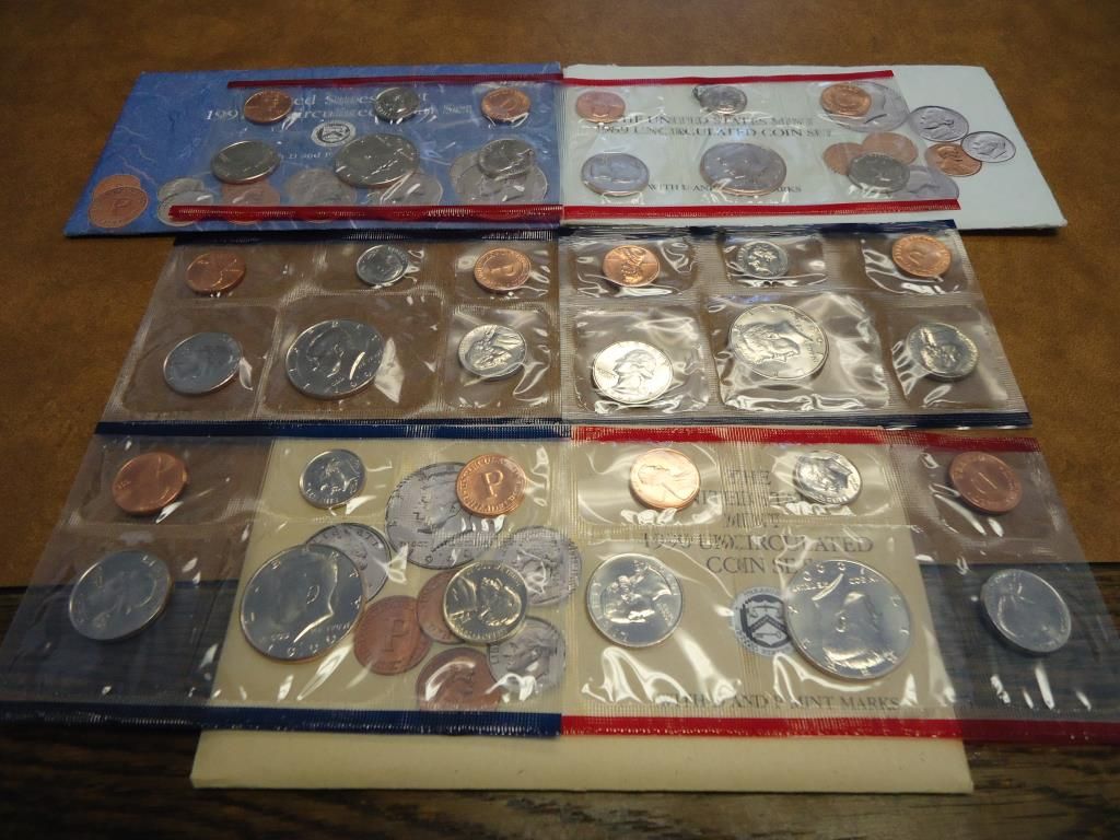 1989,90 & 91 US MINT SETS (UNC) P/D WITH ENVELOPES