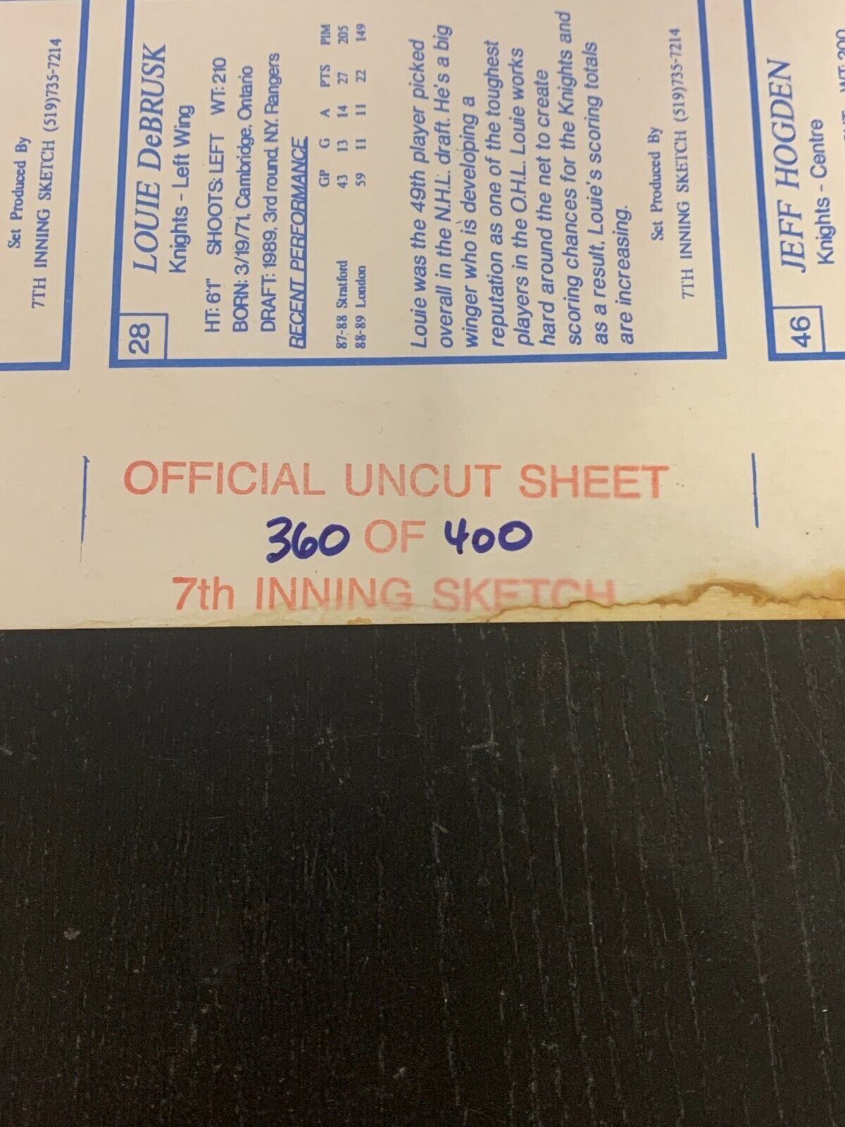 1989-90 CHL London Knights 360/400 Uncut Sheet
