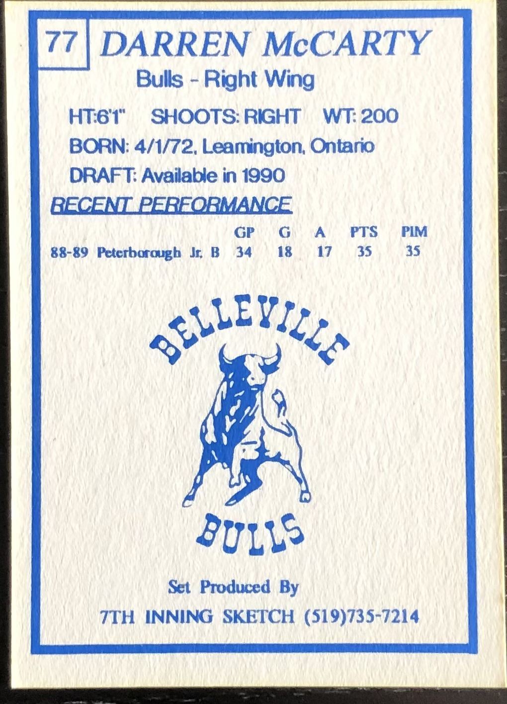 Card #77, issued by 7th Inning Sketch OHL, CHL, NHL, hockey, rookie