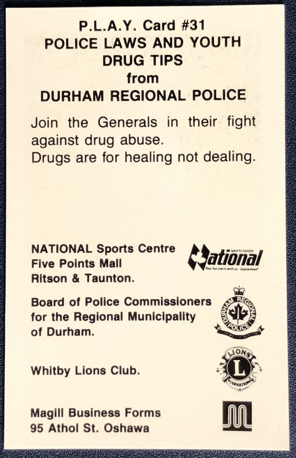 Card #31, issued by Durham Regional Police