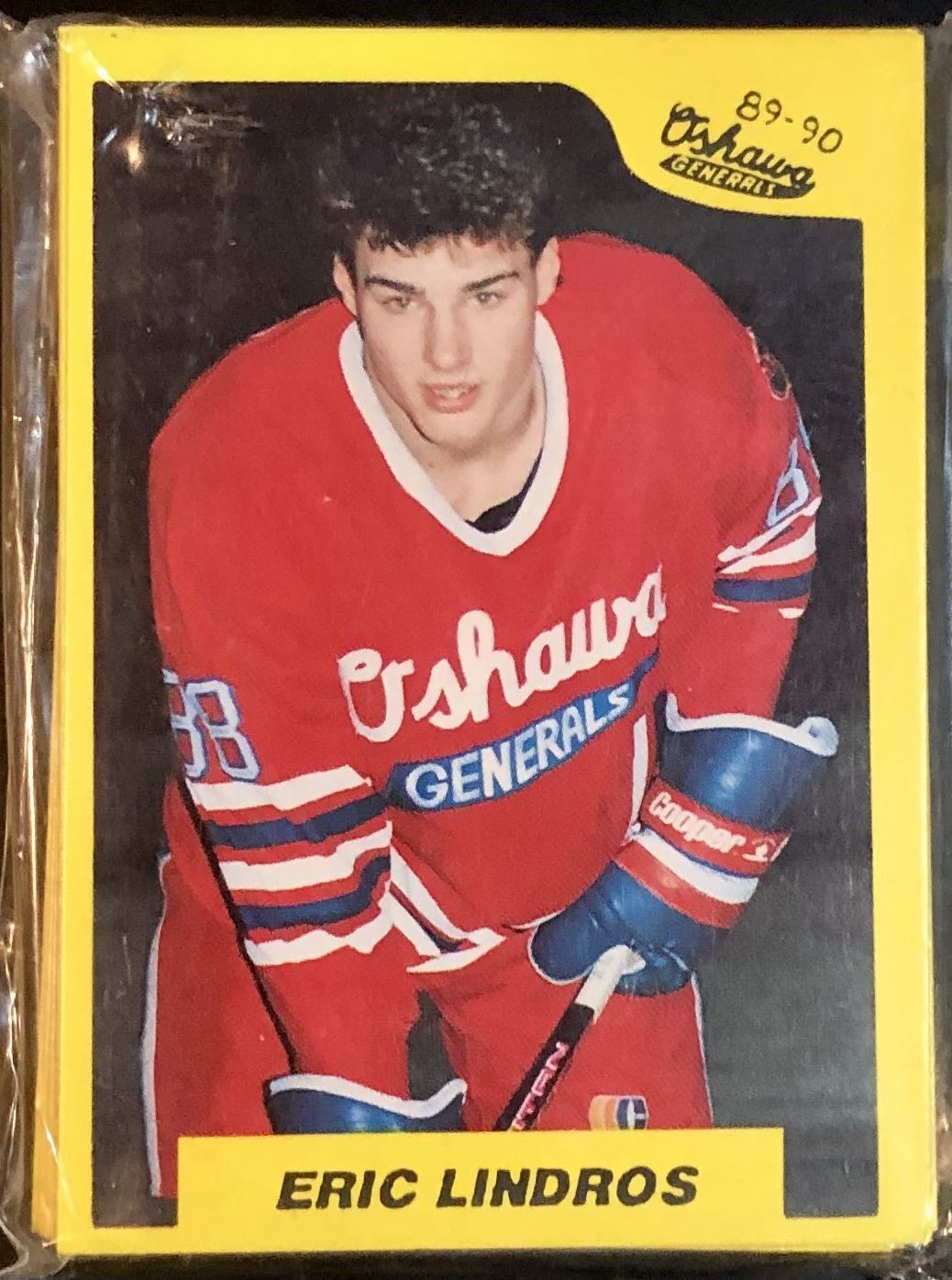 23 card team set, featuring first card of HOF'er Eric Lindros, produced by 7th Inning Sketch. Junior hockey, rookie, hall of fame, OHL, CHL